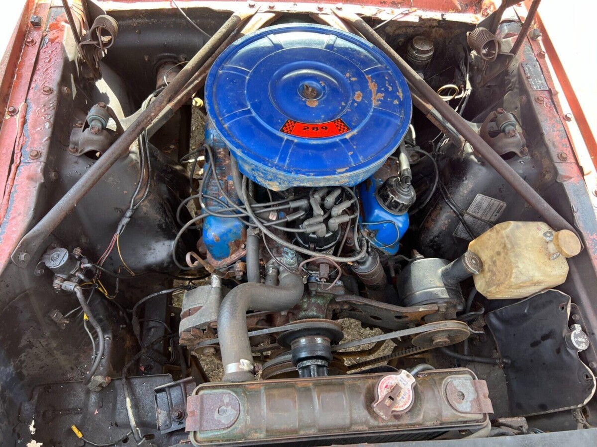 Besides all the other flaws, the engine is the wrong color, wrong air cleaner, and is just an all-around parts car. I suspect that this car was found in a field somewhere, and the seller had a ’67 or newer V8 to stick in it and didn’t have the knowledge to know to paint it the right colors. Just my 2$ (adjusted for inflation).