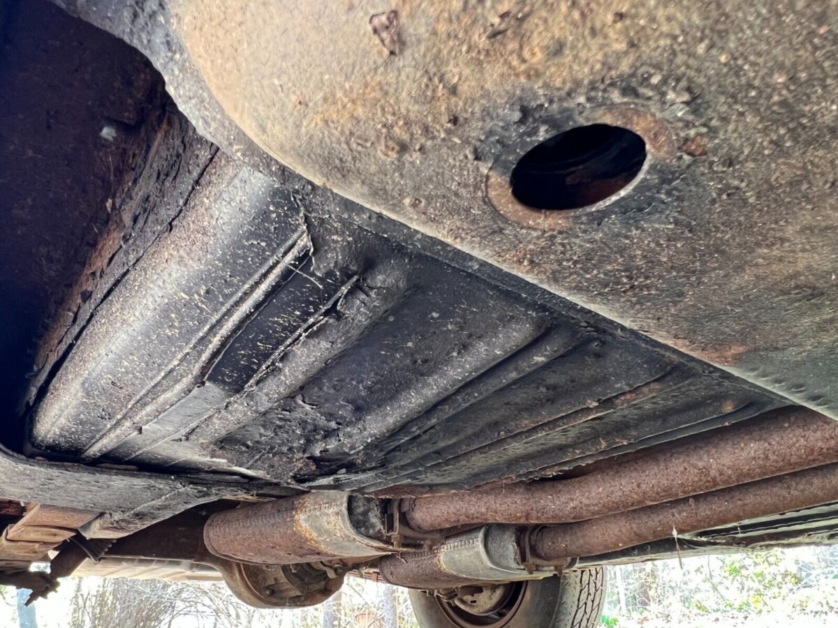 I’m always worried about rust in a Mustang, being a unibody car, and this one does nothing to calm my fears. In fact, “rust bucket” is an appropriate description, with rot in the rear quarters and other body panels. The view inside the trunk obscures the left-side frame rail. The right looks OK and is one of the few places where this car’s original yellow paint can still be seen. The seller notes various other problems including rust near the torque boxes and possible prior repair to the floor, which is confirmed in the images. Remember that “rust never sleeps,” so the longer you take to get this car media blasted and in primer, the worse it’s going to be. I’m not sure there’d be much left of it at the end of this process.