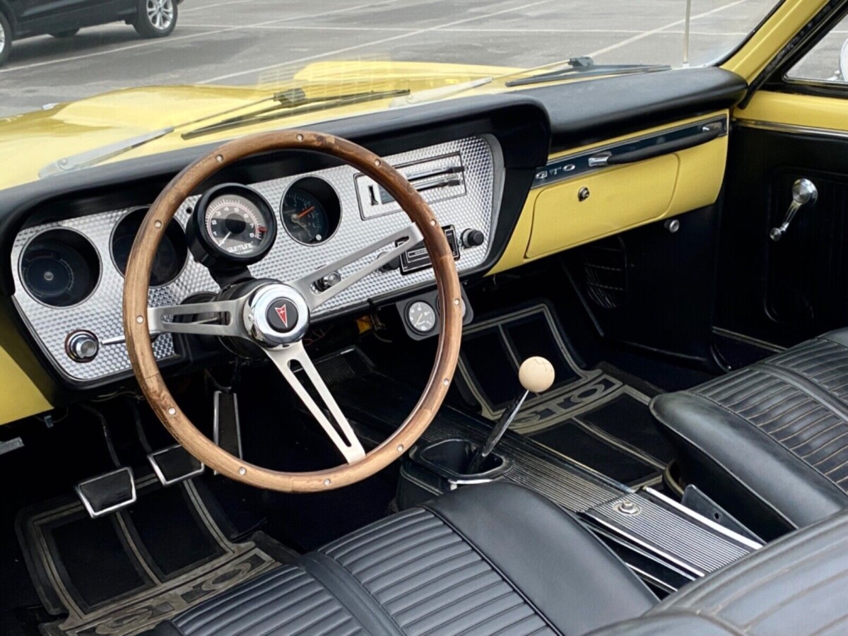 I agree with Laurence never seen a body color dash or a GTO without wood grain instrument cluster surround or a zinc yellow GTO. A buddy had a 69 that was much paler butternut yellow love the 66-67 and this drive train is awesome