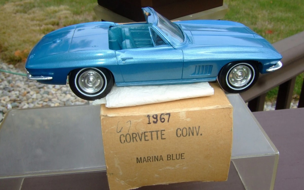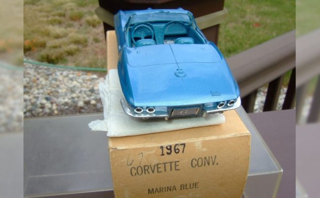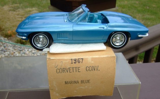Salesman’s samples, or dealership promotions (dealer promos) were a big thing two or three generations ago, or more. A lot of us have seen salesmen’s samples on Antiques Roadshow or in antique shops, or online. This 1967 Chevrolet Corvette Convertible 1/25th Scale Dealer Promo proves that they can and do sell for big bucks. This one is posted here on eBay in Bluffton, Indiana, and the current bid price is (are you sitting down?) $1,052! Thanks to Curvette (not Corvette) for the tip!