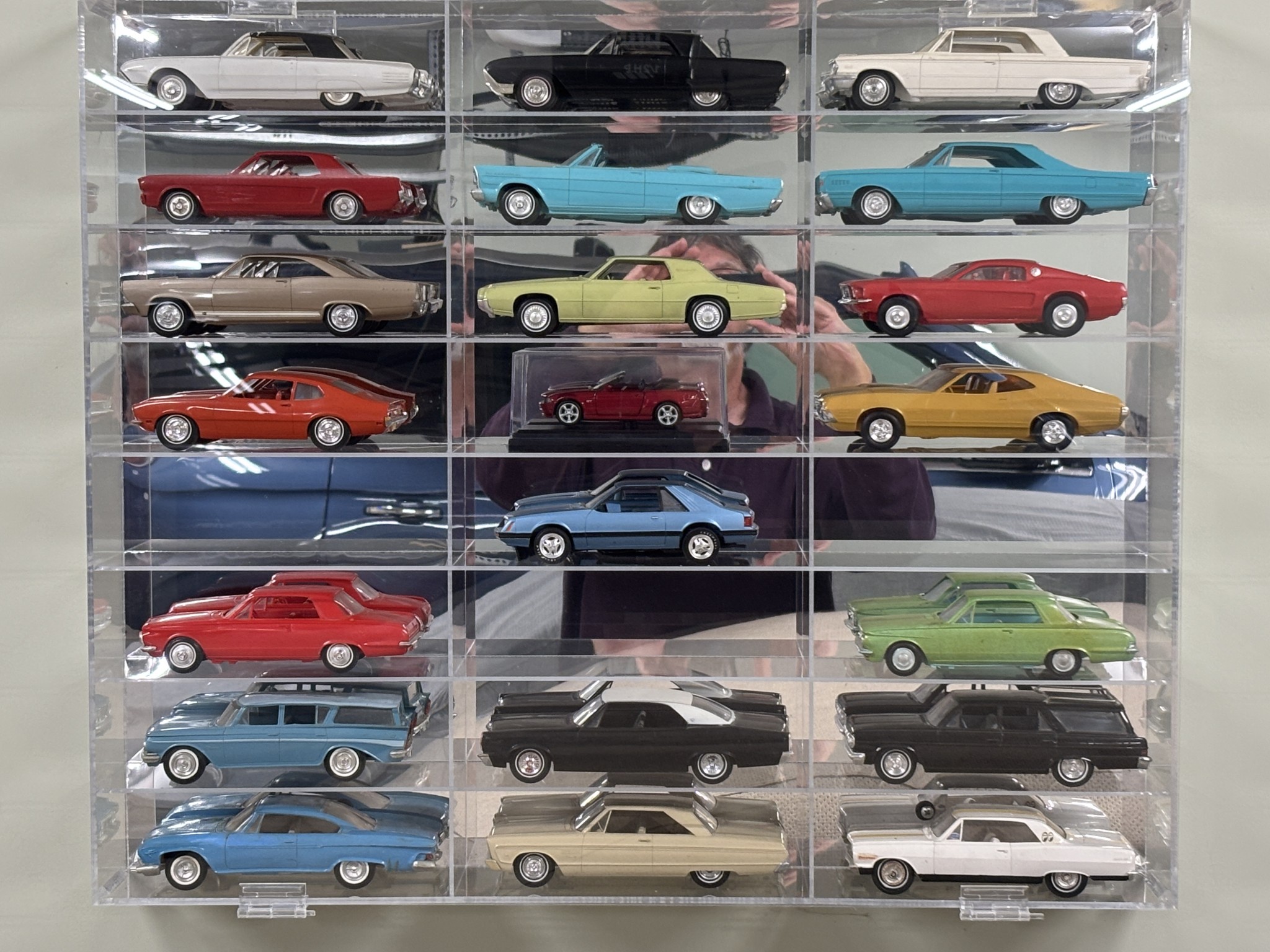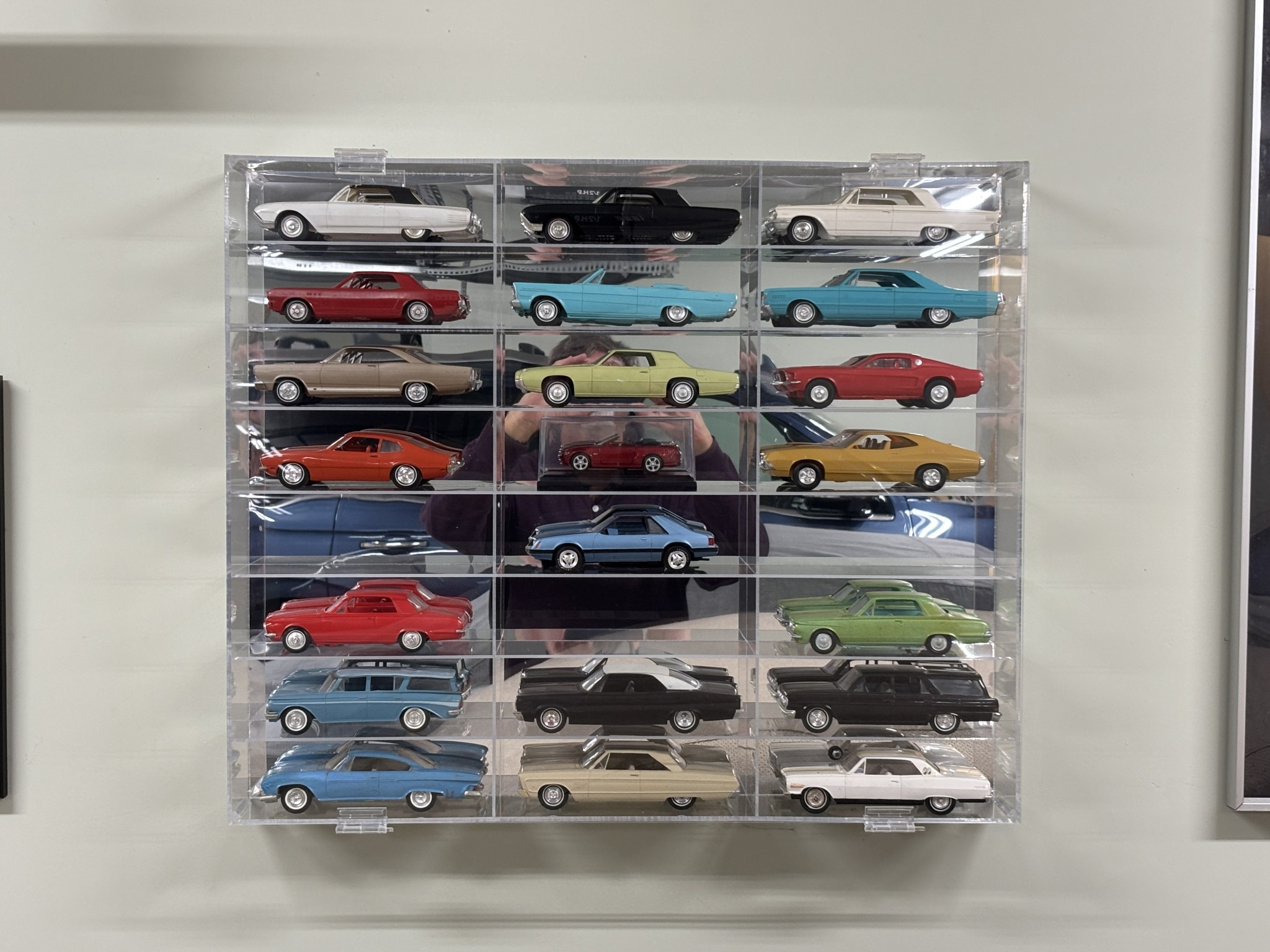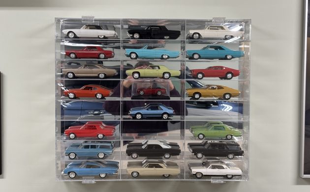 Here’s my collection of (mostly) promo cars, in their display case on the garage wall. I think they are kind of cool.