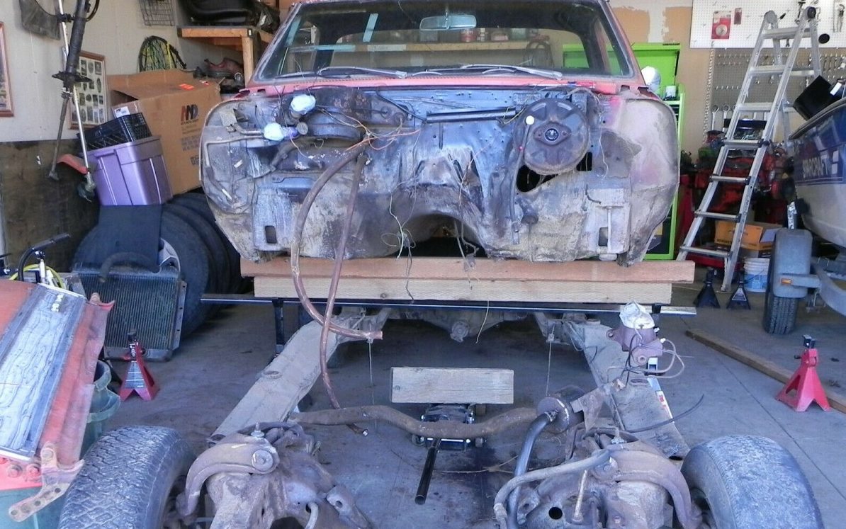There’s no interior so there is nothing to cover on that front. So, what do we have exactly? Sounds like an El Camino body that needs lots of metalwork, an entire interior, wiring, the engine/transmission to be completed and installed on the frame, and then, the body rejoined to the frame. Obviously, there is a myriad of other smaller details that will need to be accomplished so I don’t mean to oversimplify the challenge that completing this El Camino will entail.