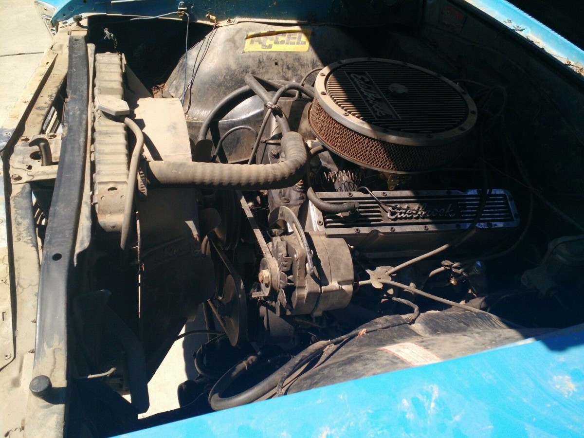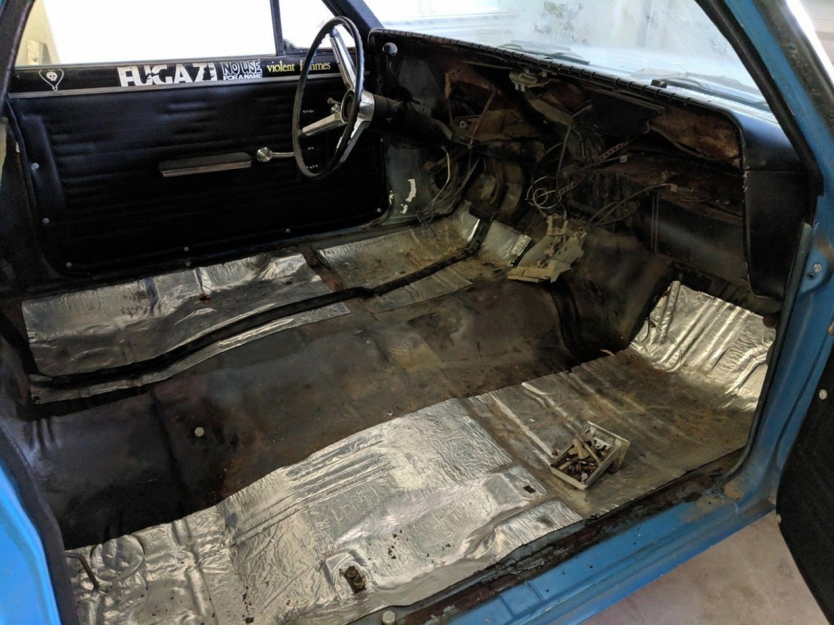 The smurf like exterior appears to be very reasonable in its condition, but the seller mentions that there is some rust around the front and rear windows. It is unclear how significant that rust may be as there are no photos of the areas in question. The body looks straight and crisp, with no evidence of rust in the rockers or quarters. You will find a few dings in the bed, and on the wheel wells, but the bed appears to be in fair shape with no rot as well. With some time and patience, this El Camino could be a sweet driver in no time! Would you take the chance on this El Camino?