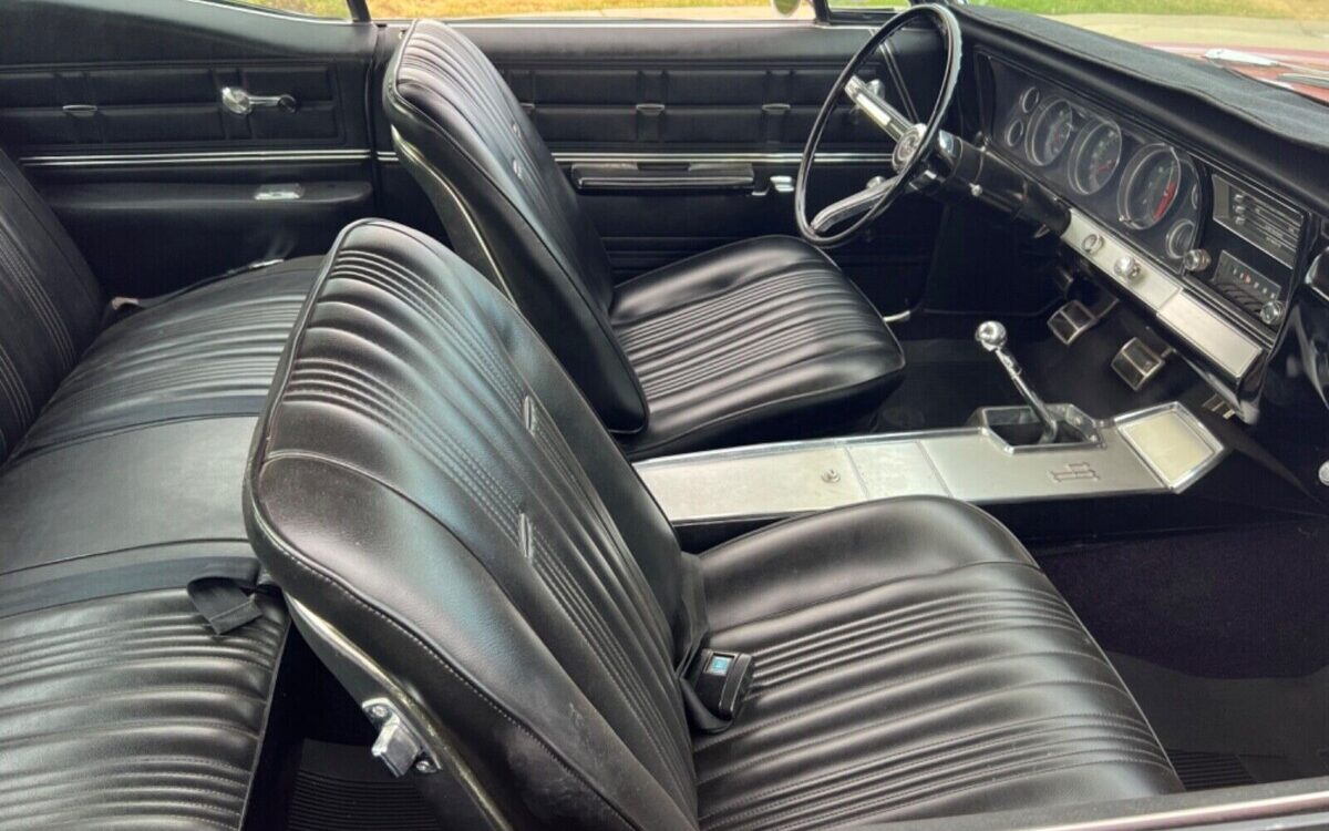 Now, if this SS 427 was not built on an Impala SS, it would have a bench seat. But since that’s not the case, and a model “68” (Super Sport) serves as the base, the SS’s bucket seats and center console are present. The black vinyl “strato-bucket” seat upholstery shows well, as do the door panels, console, and carpet. The original purchaser of this car specified full instrumentation and a tachometer is included.