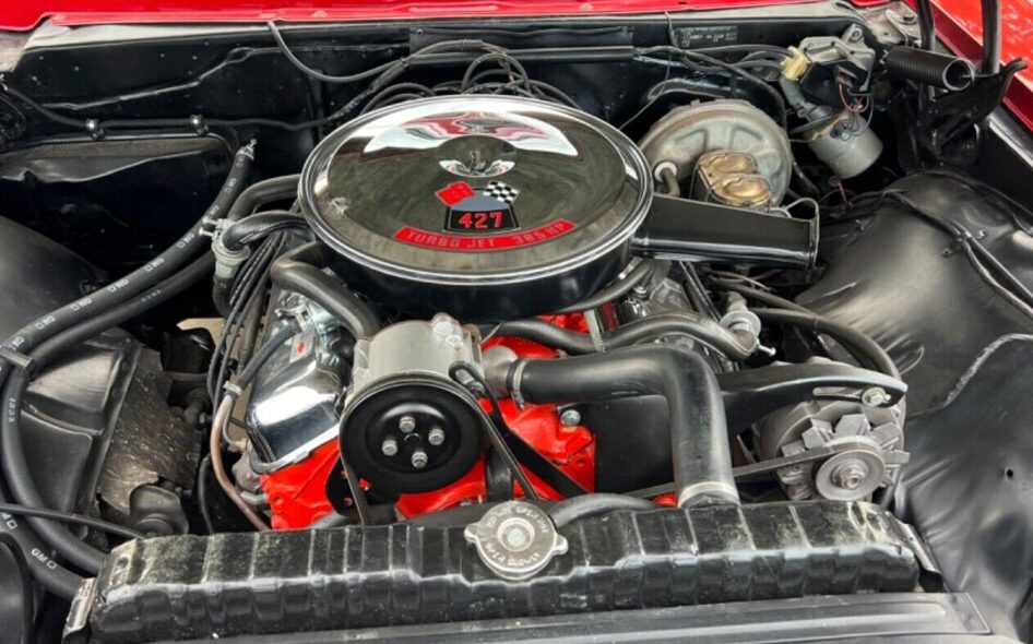 It’s stated that this car did spend some number of years in storage and today, with 5K miles on its odometer (probably 105K) it looks fabulous! The Bolero Red finish shows no sign of fade, something red will do when exposed to a lot of sun, and all of the unique SS 427 trim is still in place. Of note are the wheels, they’re sort of correct. Introduced in ’67, Chevrolet’s ubiquitous rally wheel option for a B-body car should measure 15″x6″ but those employed here are definitely wider, at least seven inches and maybe eight. The center caps, known as flat caps, were a ’67-only item, and they are correct for this example.