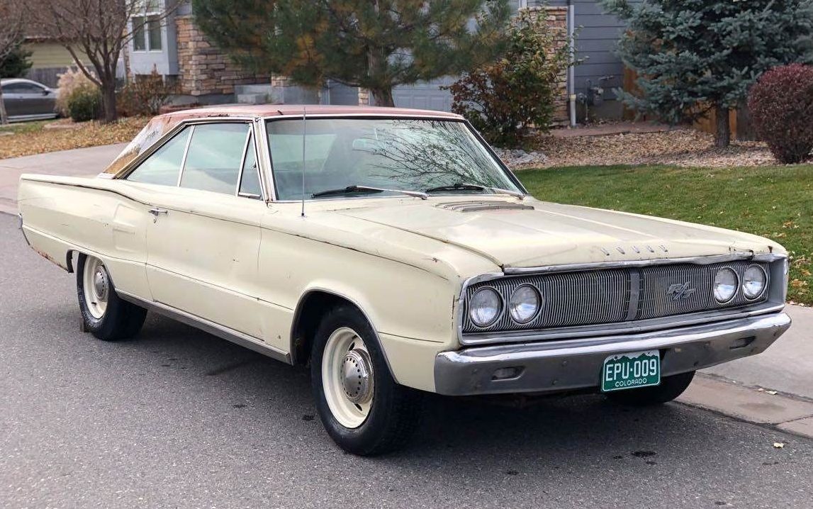 Except for hood louvers and subtle “R/T” badges, little distinguishes this 1967 Dodge Coronet R/T listed here on craigslist in Denver, Colorado from an economical six-cylinder or 318 cid V8-powered model… in appearance anyway. Step on the gas, however, and the 440 cid mill would have responded by converting fuel into thrust with complete disregard for economy. A stout but not-so-awesome two-barrel 383 replaced this Coronet’s 440 long ago, but the mostly-original R/T (Road/Track) looks fairly solid and the $9,800 asking price appears more realistic than many listings fueled by TV auction Mopar Madness.