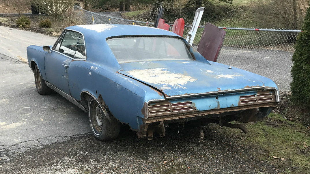 There will always be a low mileage Lemans donor car which would be more of a simple fix with a tail panel change and the hood along with all the stuff for a tribute per say or is it time better spent on a rotor job ? My buddies mom’s garage kept original paint/interior 1967 – he might let go of one day…would work for me….