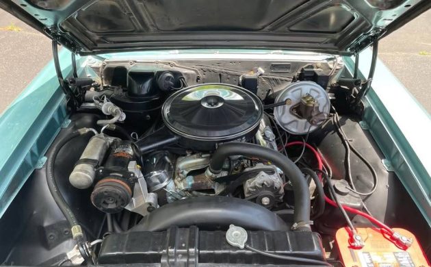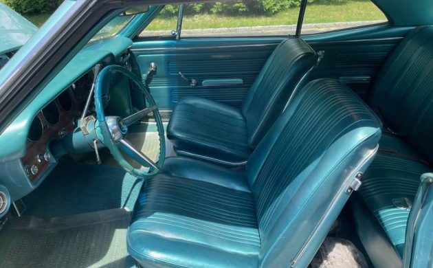 The Turquoise theme set by this GTO’s exterior continues inside, with the upholstered surfaces trimmed in that shade of vinyl. The floors wear matching carpet, with the dash and pad also finished in Turquoise. The seller confirms that there is a small tear in the driver’s seat that doesn’t reveal itself in the supplied photos. Depending on the size, it might respond to a blind patch if the new owner decides to preserve this classic. Otherwise, replacement seatcovers are readily available and are quite affordable. The dash, pad, and the faux woodgrain are in good order, and while this isn’t the first that I’ve seen, the first owner’s decision to order this GTO with a column shift helps it to stand out. The seller states that the factory air conditioning is disconnected, and may need a new compressor and other parts to blow cold. Otherwise, there appear to be no functional issues.