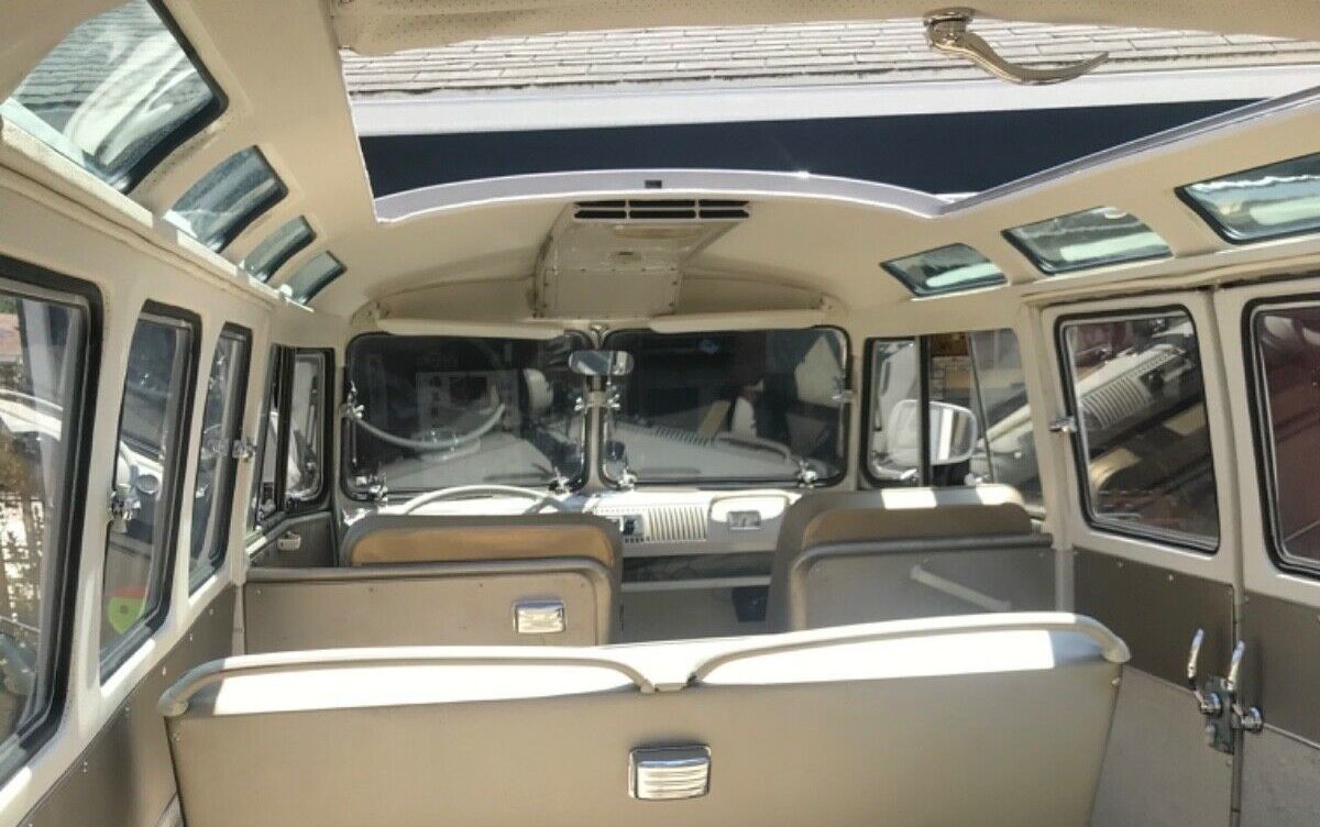 The seller says the interior is all original with the exception of re-covered front seats. As you can tell, this model also features a large sunroof, which is a really fun feature. This bus would be great to go camping in!