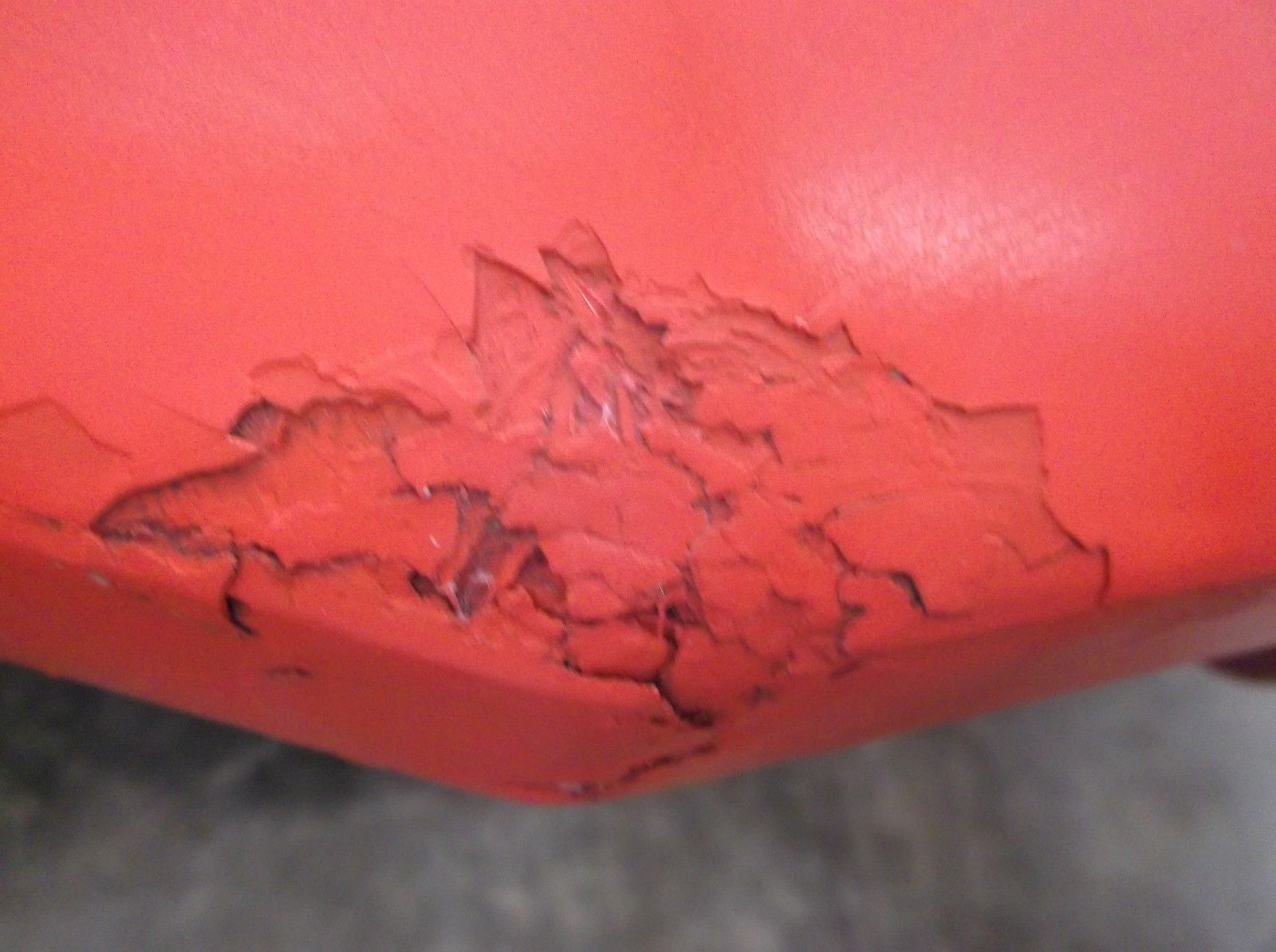 I think this is a closeup of the very front of the car. It’s pretty scary that someone decided to just paint over this damage. The seller mentions that it looks okay from 10 feet.