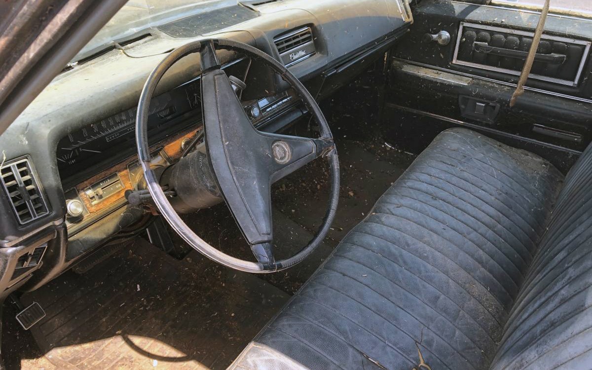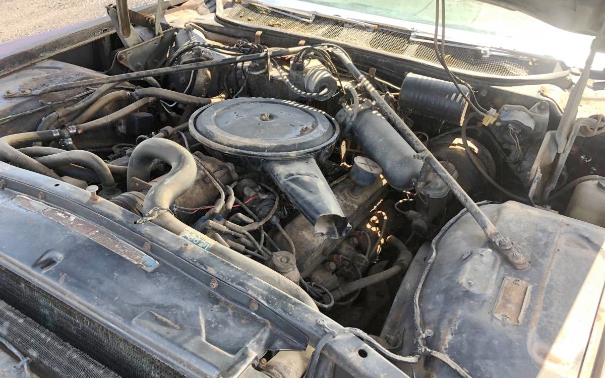 The seller has provided two engine photos which is great. This is Cadillac’s 472 cubic-inch V8 with 375 horsepower and the seller says that even though this car had been sitting for years, they put a battery in it and put some gas in the carb and it fired right up. Can this Cadillac be saved without breaking the bank?