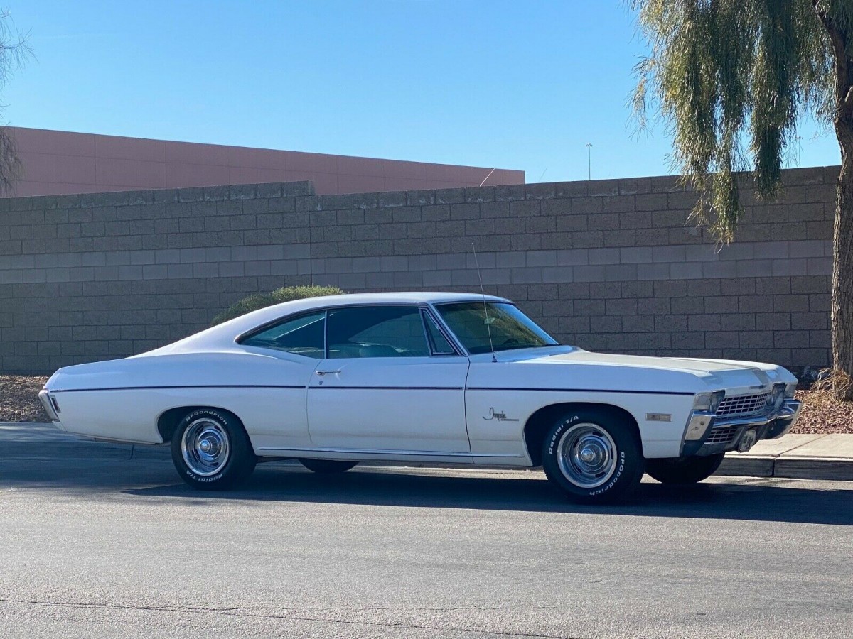 If you can get some scales and drive the car on them you can tell how many pounds of bondo are in this car!! I have a white 67 caprice 396 with a power glide and I would still love to own this 68 must be fun with the hog leg!!!