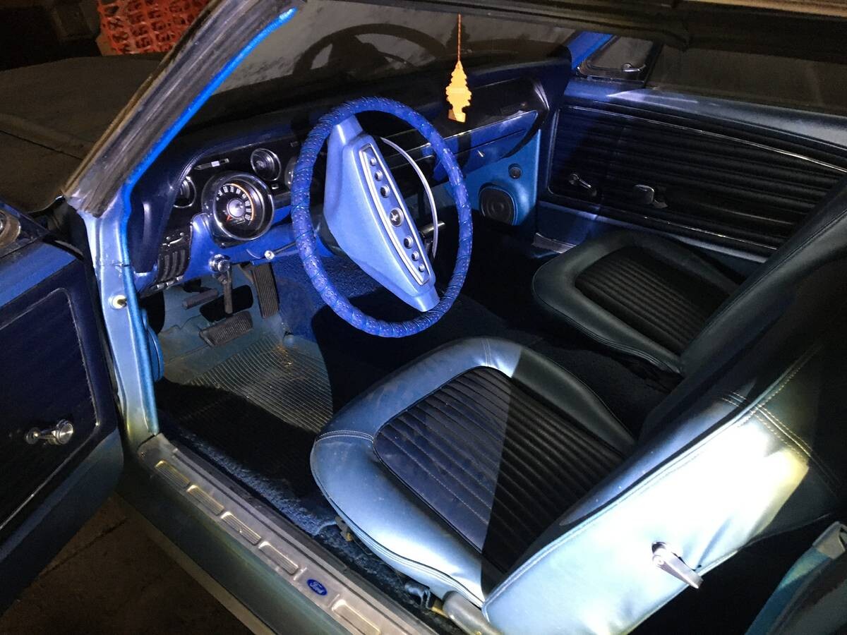 Tackling this Mustang’s interior shortcomings could be easy because it looks like some high-quality cleaning products, dust cloths, and a vacuum cleaner might be all that is required. The lack of use following the restoration means it remains in good order. There is a consistent dust layer but no evidence of wear or other problems. The Blue vinyl looks excellent, as do the carpet and dash. There are aftermarket kick panels housing speakers, suggesting there might be a relatively modern stereo in there. The wheel wears a wrap, but I can’t spot any other additions. The longer I look at this interior, the more my fingers itch as I long to give it the clean it deserves.