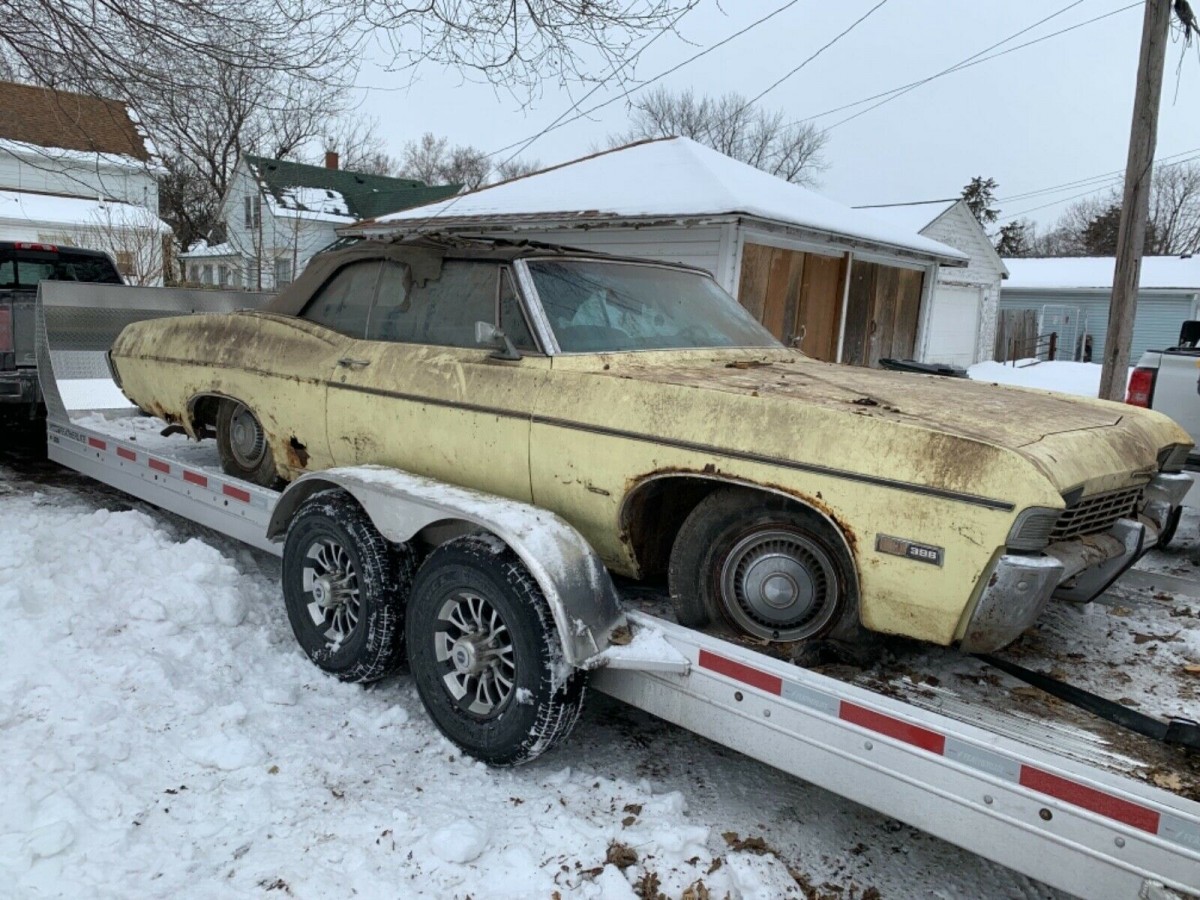 I had a 68 Impala Convertible with that same body, interior, and top color, same engine and trans… Mine was in great shape and ran fine. It had an electrical gremlin in the lights and turn signals that was driving me insane, and I was moving, getting married, and had storage issues, so I let it go for a loss, which is coincidentally almost the same as the current bid of $3550.