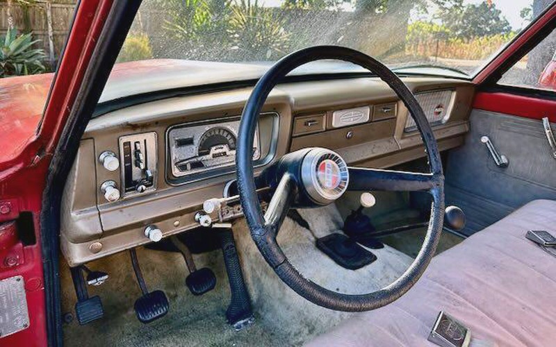 The Kaiser types were great trucks, close cousins to its military roots. I’ve always said, the AMCs were a knockoff, ( don’t get your undies in a bundle) they were still great vehicles. The “wider” grill the author speaks of is after AMC bought Jeep from Kaiser( 1970?) and became just the J series and dropped the Gladiator name. I was amazed to read, a 1969 Gladiator pickup like this cost about $3500 bucks. In 1971, the AMC J series pickup cost almost $4300 BUCKS! They cheapened them up some, and charged more. Who said AMC was dumb? Naturally, I personally( and 50 million others) would prefer an automatic, but buyers here pretty much know what they want, and a stick is fine. The GM motor again, is okay, but I’d much prefer the AMC motors that came later. These withered away in the very environment they were designed for, and sunny Cal. is about the only place you’ll find one like this. What a find!