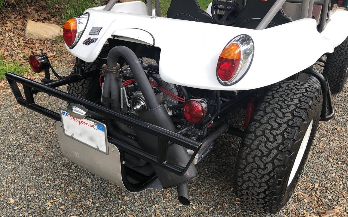 As one might expect, owners of this Manx (built from a ’62 VW) have updated it over the decades, and it looks well-cared for indeed. The racing-style wink mirror gives multiple views to eliminate blind spots, always helpful when you’re not the fastest car on the track. A lot of companies have produced knockoffs of the original Manx design, but the seller claims that this one is the real deal (#0691 in the registry). That fact alone does make it much more desirable than other dune buggy builds.