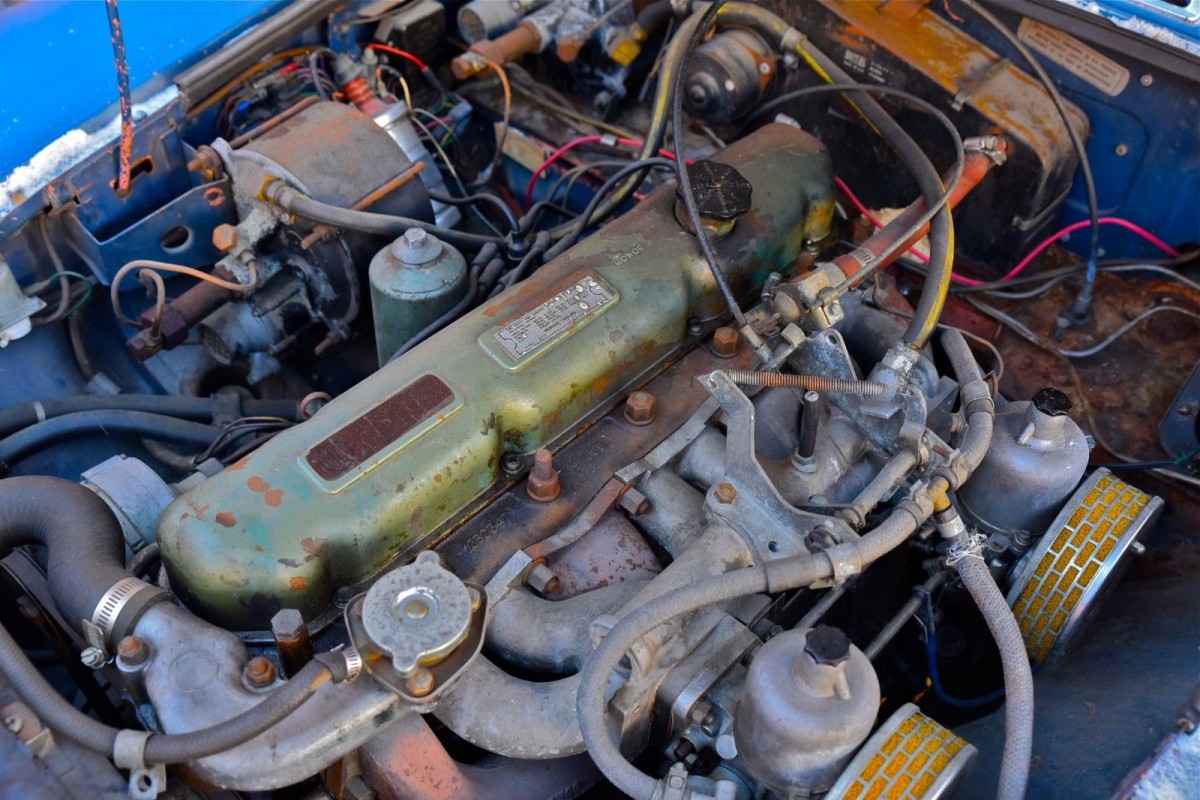 Here’s the three-liter six cylinder engine. I don’t know the exact procedure for an MGC, but on an MGB you have to take the engine and transmission out together to get to the clutch. I can tell you from lifting a Healey 3000 engine on a hoist that this engine weighs a lot: 209 pounds more than the MGB four-cylinder to be exact! I’m hoping someone buys this pretty coupe and continues to drive it like a classic of this type should be. Anyone out there agree?