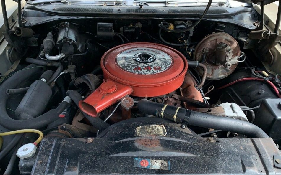 Filling the engine bay of the Oldsmobile is the 400ci V8, which is backed by a 3-speed Turbo Hydramatic transmission. The Olds also features power steering and power brakes. With 325hp on tap, the 442 could skip through the ¼ mile in 14.9 seconds, which is pretty respectable for a car that weighs 3,720lbs. The owner says that the car runs and drives, and not only does it wear its original Rally wheels, but the original Wide Oval red-line spare is still in the trunk. The owner also makes the claim that the 442 has only covered 84,719 miles, but doesn’t mention whether he holds documentation to back this claim. Speaking of documentation, the car does come with a reasonable amount of it, including the Protect-O-Plate, Soft Trim Broadcast, and Owner’s Manual.