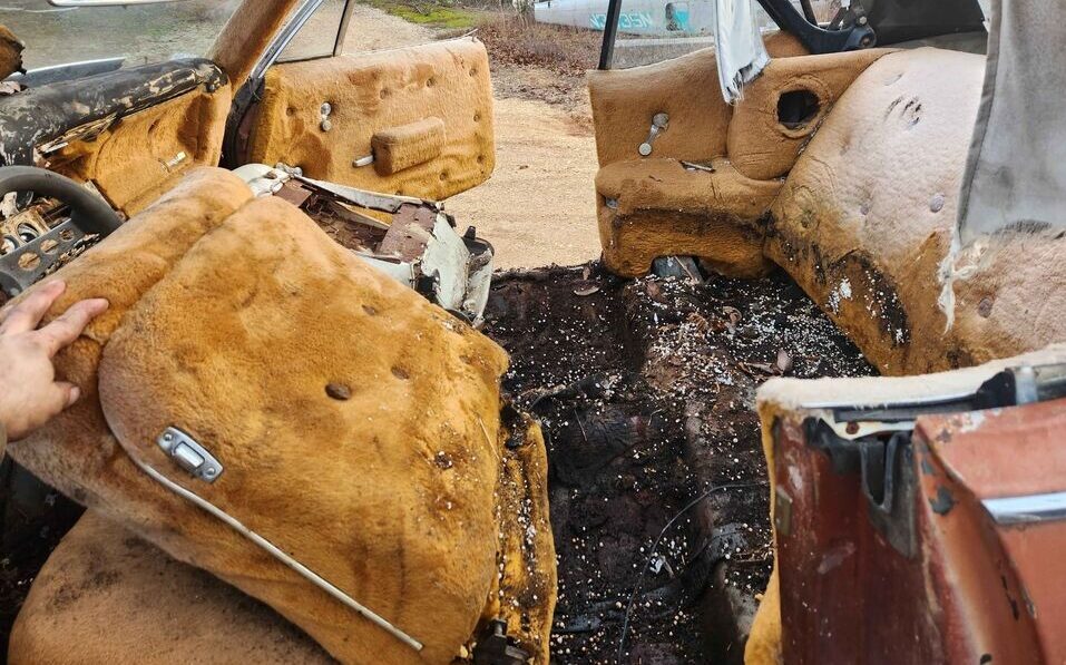 Home Depot sells inexpensive disposable full-body suits. (Don’t ask how I know. 😬). That and a respirator, and there would no reservation about ripping out-whatever that is..? It would be interesting to research what this car was when it left the factory-and what it is now. However, No title, No way.