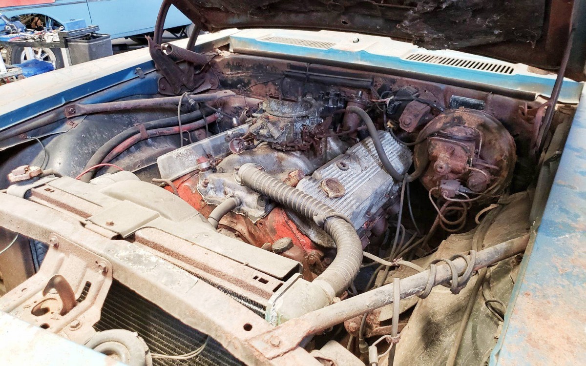 That’s a lot of rust since it was parked in 1975. It can be restored. It has a lot of options and even the original AM FM radio.