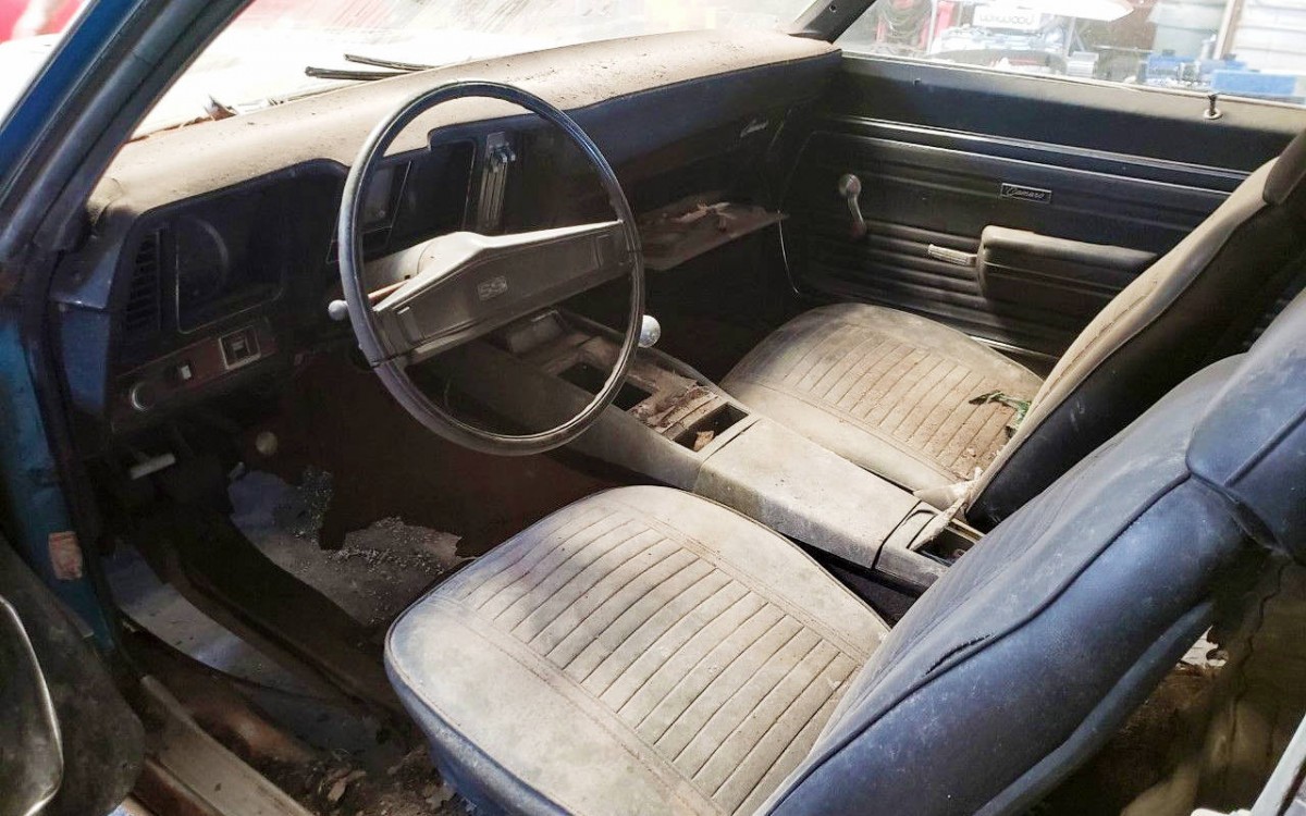 The seller claims that the 396 turns over, but that they haven’t attempted to start it. There’s a fair amount of corrosion visible in the engine bay, which is never a good sign. Whenever you see a firewall with this much rust, you can’t help but wonder what the underside looks like.