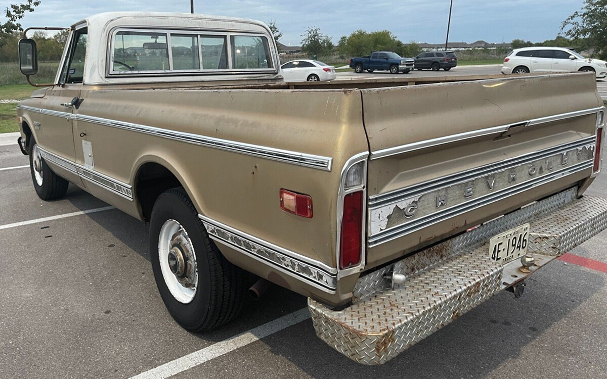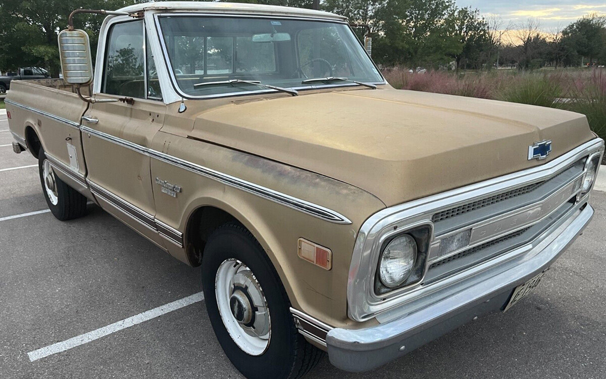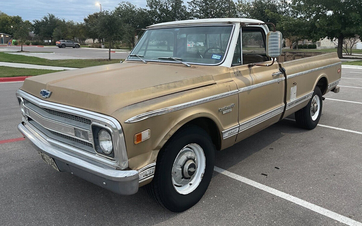 This truck is similar to one that we had when I was growing up, although ours was from the enemy camp: Ford. Ours was an F-250 Ranger Camper Special but it was basically the same. Although, in an eye-popping orange color rather than tan or gold as seen here. This is a second-generation Chevrolet C-Series pickup, in this case, a 3/4-ton C20 with the Custom Camper option package. There were a couple of wheelbase options for the C-Series Fleetside pickups. This one has a 127-inch wheelbase and it came with an eight-foot box – Chevy made 74,894 of these trucks. There was also a 133-inch wheelbase model called the Long Horn that came with an eight-and-a-half-foot box, of which 8,797 were made in 1969.