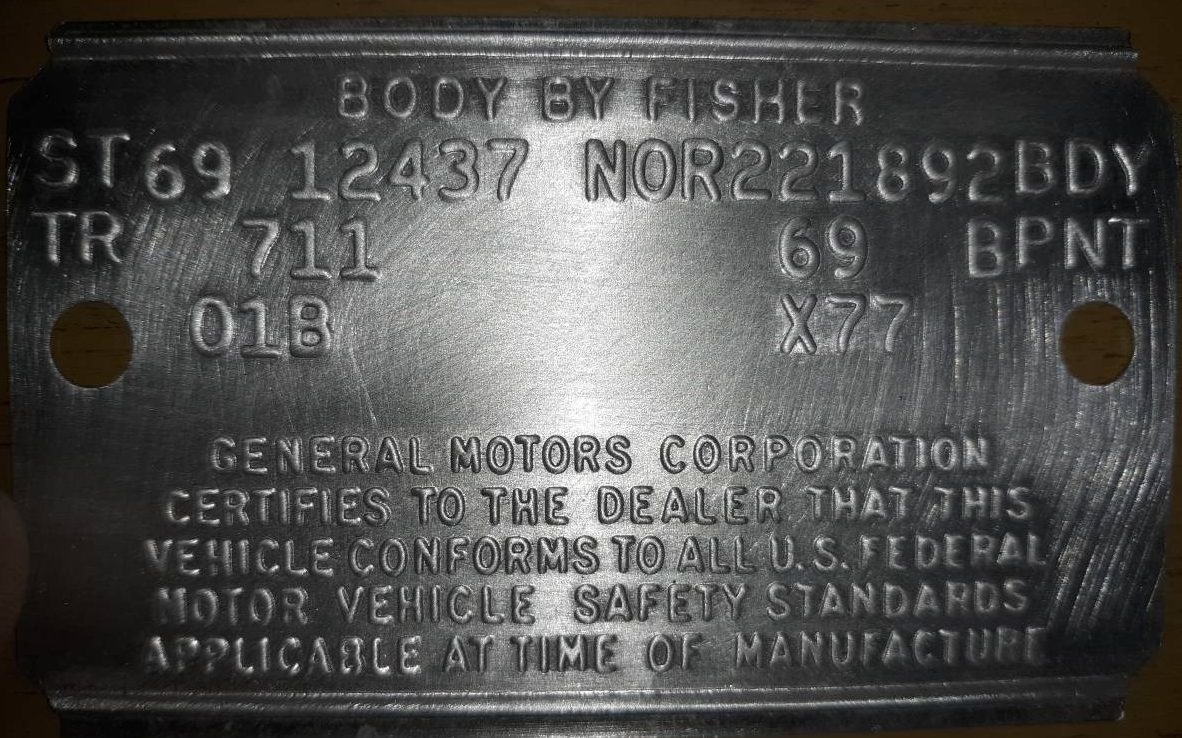 Though I’m not crazy about the engine stamp pictured, the trim tag does appear legit. This car’s VIN indicates it was built in January 69, and the trim tag’s body build date is 01B, mid January 69.