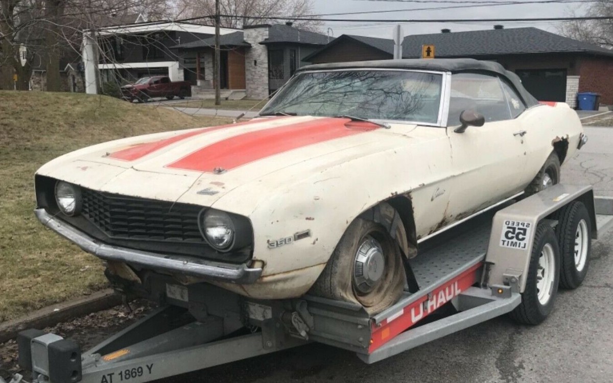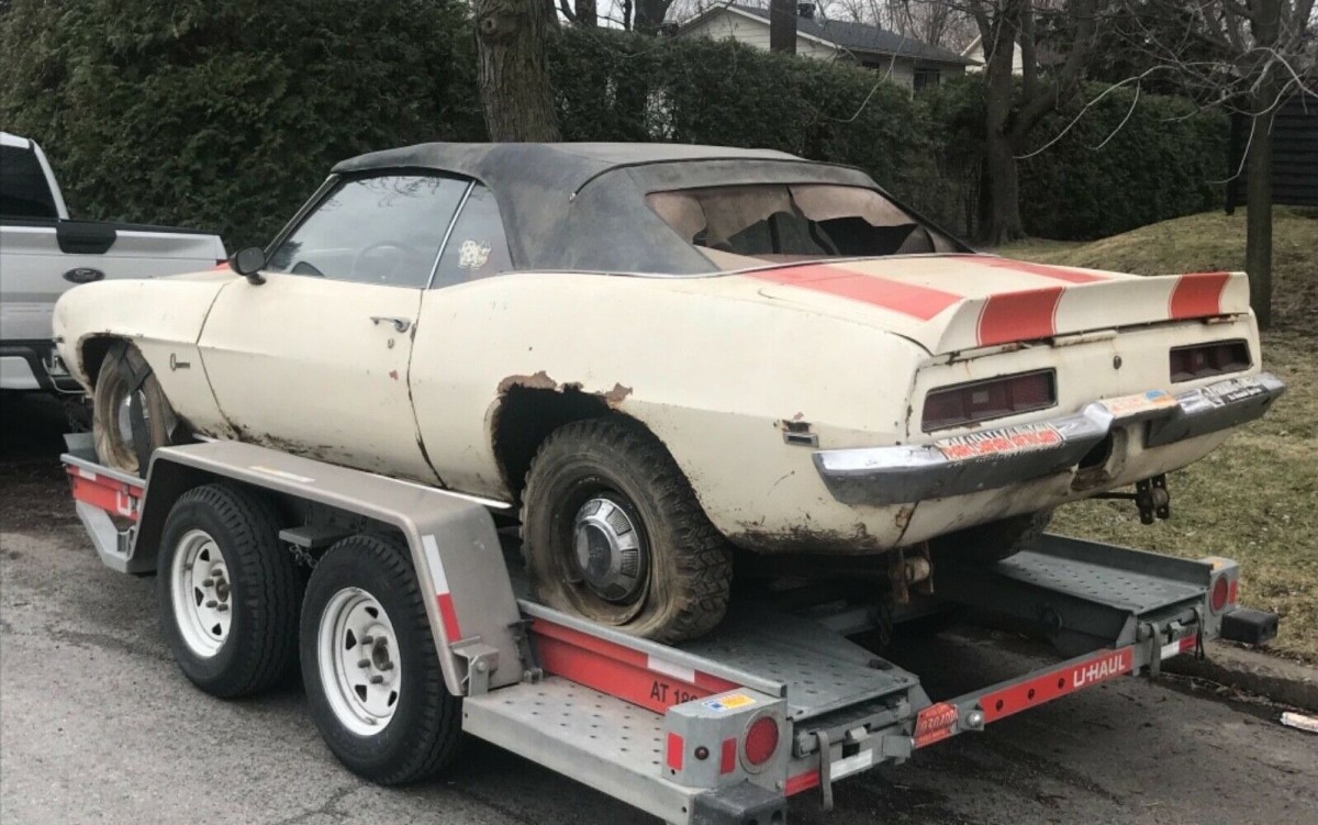 Vehicle is offered for sale in Quebec. Given the mish-mash of Pontiac and Chevrolet cars for sale in Canada in the past (in general late ’60s) is it possible that Canadian versions of Z11 were different from their US bretheren? Could they have been offered with non RS fronts, stripes that ended at the hood, standard Camaro taillights with integrated reverse lights and Firebird rear bumpers? Or is that just too much to swallow?
