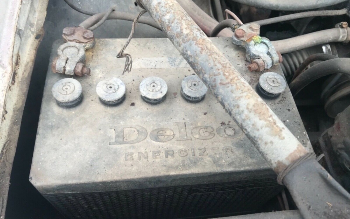 While looking around the engine bay, I noticed that the Delco battery looks very old. The seller claims that it has been in a barn for 42 years so maybe it could even be the original?