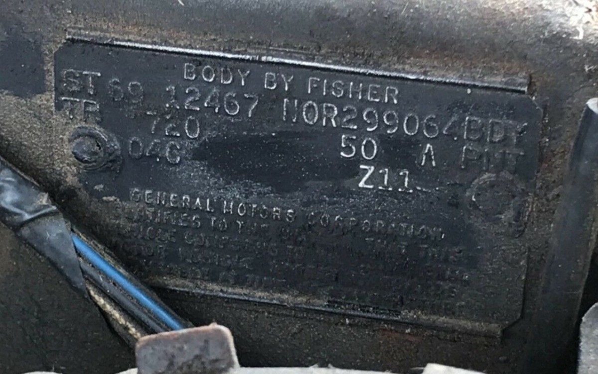 If this is 1 of the last ’69s, it has a ’70 door mirror! Car factory workers have put wrong emblems, etc. on cars – sometimes 2 non matching engine displacement emblems on the same car, perhaps grabbing the wrong part by mistake out of box if in a hurry/behind quotas,