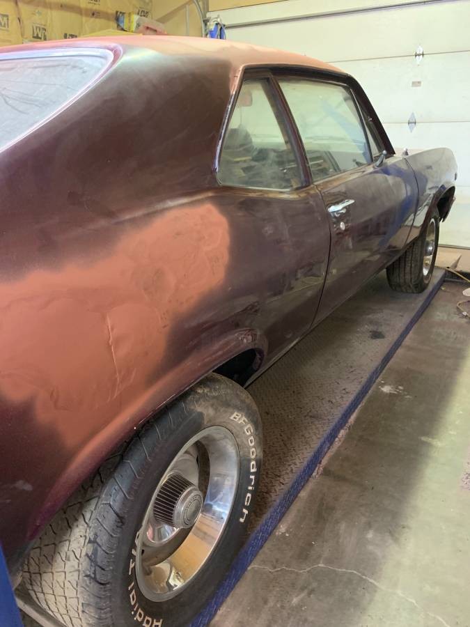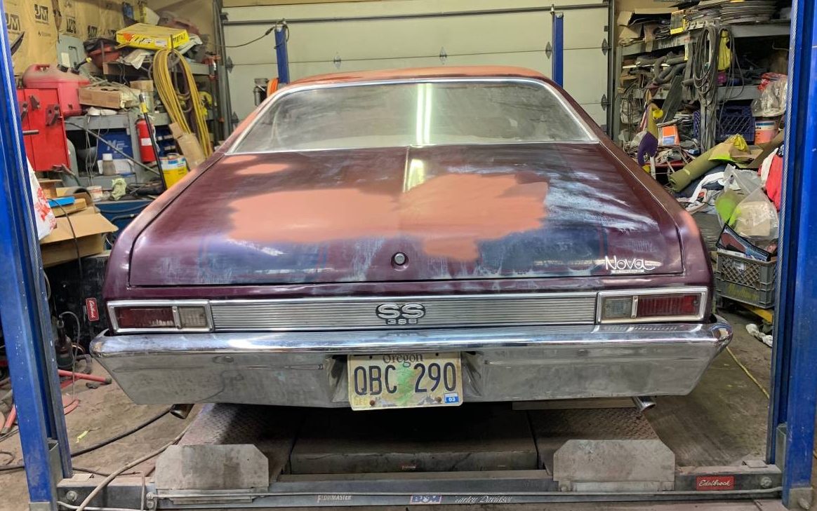 Mechanically this Nova has a 396 cubic inch V8 and two choices of transmissions. The seller has a TH400 automatic or a 4-speed manual transmission. Currently, neither the engine nor a transmission is present is installed in the car. From one of the photos, the engine appears to be in pieces. It does have a 12 bolt rear end and 4.10 gears. Sadly, the body of the car will need to be redone. A failed attempt to fix a quarter panel back in the ’70s will be the future owner’s task to fix. Other parts and features, including a hood, are described by the seller within the listing.