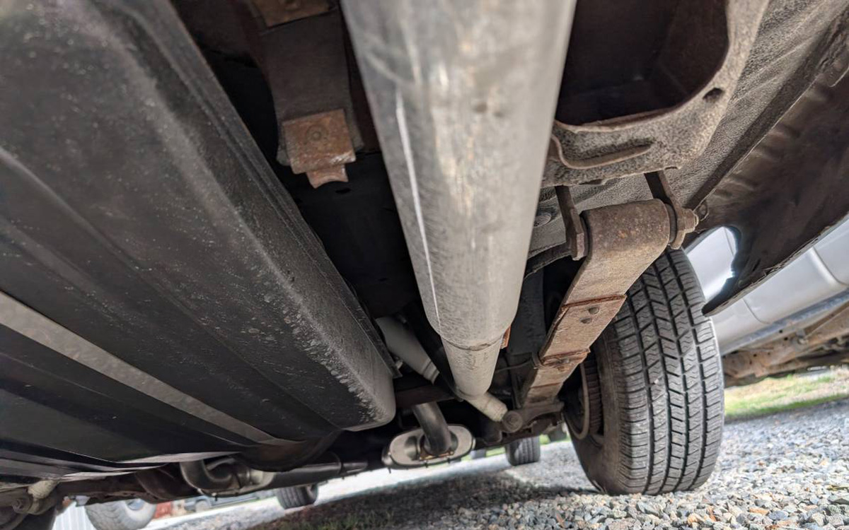The interior may be another story. There are exactly three interior photos, and they’re all extreme closeups like the one above. Something must be going on in there for it not to be shown as well as the exterior is, and there’s no mention of the interior condition in the listing. From what the three cropped photos show, it looks great, so I’m not sure why better interior photos aren’t included. This car has “optional textured vinyl seats” with a bench in front, according to page 17 of this brochure, but otherwise, this appears to be a pretty base-level car with no power windows, AC, etc. They show a few underside photos, and it looks fantastic.