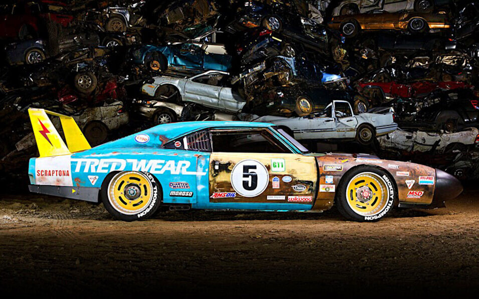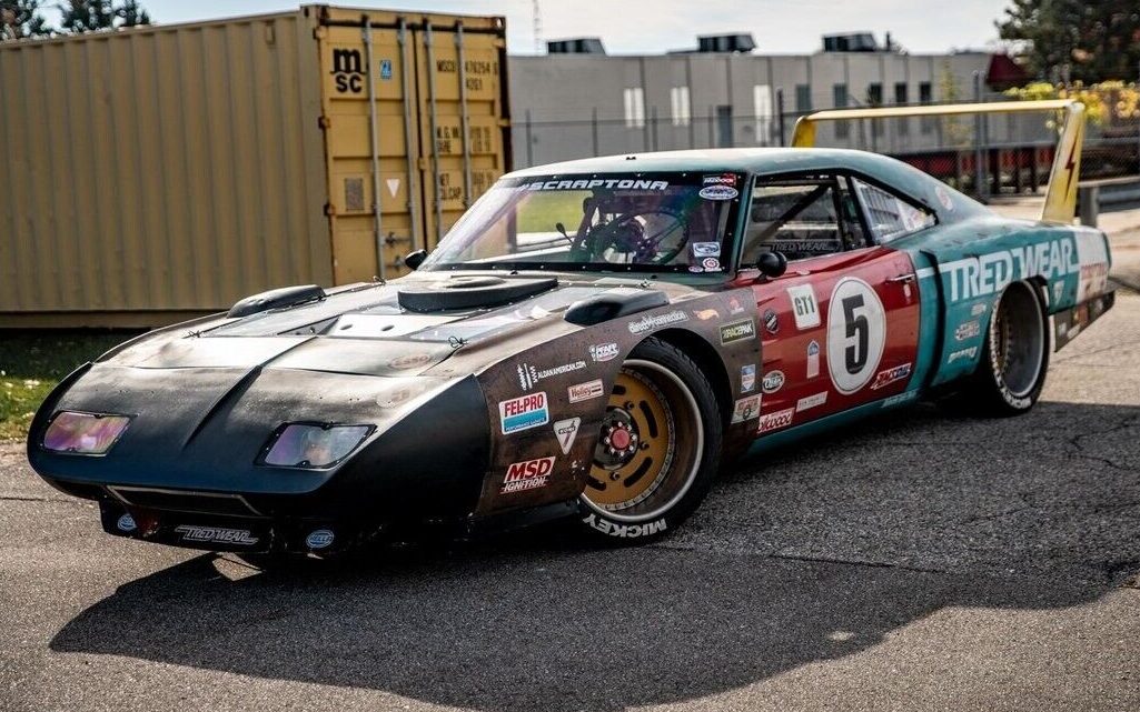 Thirty years ago on a Saturday night in the South, you might find a car like this 1969 Dodge Charger screaming around a dirt track to the crowd’s cheers. Low-budget race teams will throw something together using any pieces they can from other cars in order to campaign. That is the theme of this build spectacularly called “Scraptona.” It is a full-blown race car that is meant to look like a pieced-together mess. It can be found here on eBay with an asking price of $128,900 OBO. Built by the people at TreadWear, they started with just a shell of a Charger. The front cowl, front suspension, and roof were about all they started with. The car debuted at SEMA in 2018 and turned heads everywhere it went. Take a closer look at this awesome car!