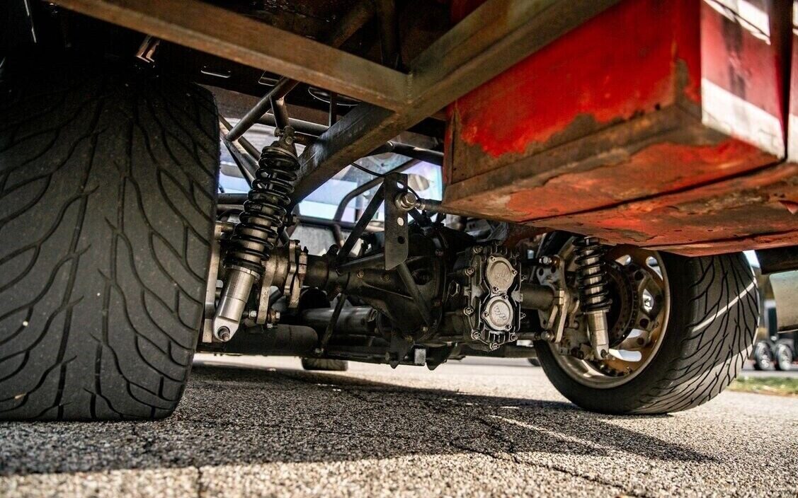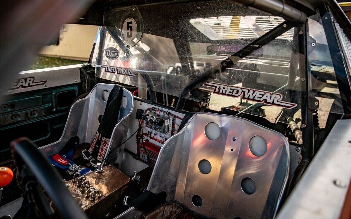 You can see the interior is a full-blown race car, except with the addition of a passenger seat. The builders did a great job of integrating new components while making others match the exterior. For instance, the center “console” houses various switches and accessories but it looks like a rusty, recycled old box.