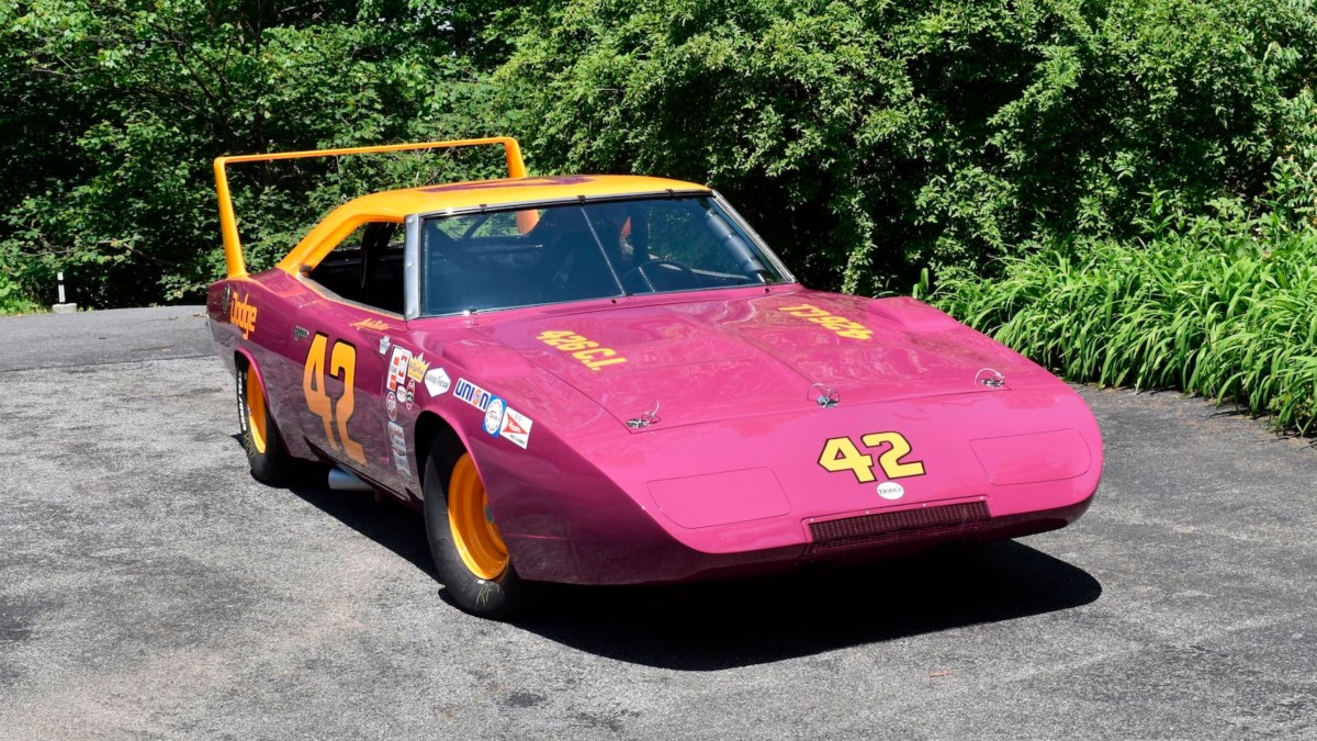 This Dodge didn’t start its competition life as a Daytona. It originally hit the track in late 1967 as a 1968 Charger in the hands of James Hylton. It remained in his hands as a Charger 500 until 1969, when it was purchased by Robbins. He enlisted the help of Bobby and Eddie Allison to convert it from Charger 500 specs to a full-blown Daytona. The car made a single start in Robbins’ hands at the 1970 National 500 at Charlotte Motor Speedway as a Daytona before it was again sold. The car was re-bodied as a regular Charger 500 due to the aero rule changes, and after being damaged in a competition accident and fire in late 1973, it disappeared. It was discovered in 2005, and various people involved in the development and build were able to confirm the authenticity of the vehicle. It had deteriorated after more than three decades in hiding, and a complete restoration was undertaken. I guess that if you are going to task someone with the restoration of a historically significant NASCAR, handing it to the legendary Ray Evernham’s Big Iron Garage in Mooresville, North Carolina, would be a smart first move. The car was painstakingly returned to the state that it was in during its single race with Robbins at the wheel, and the result is stunning. It wears his characteristic shades of Magenta and Chartreuse and carries the original racing #42. Overall, the presentation is extremely impressive, and it seems to need nothing. I have checked many period photos, and it seems that all of the correct decals and stickers are present. Restoring the vehicle wasn’t as straightforward as you might think, because ongoing evolution meant that sourcing some parts was a challenge. Chief among these were the wheels. When Robbins drove this car, it rolled on a set of Nichels NASCAR wheels. These are no longer in production, but Evernham’s managed to locate and restore a set in the correct shade of yellow. Overall, the car now makes a stunning display piece, but as you will see, that display doesn’t necessarily need to be static.
