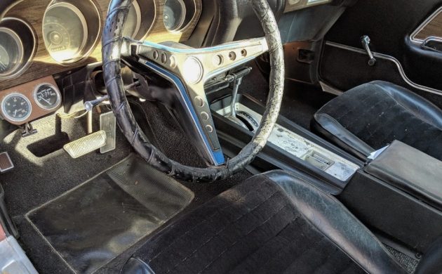 To give the 1969 Mach 1 some clout, Ford started with a 351 cubic inch V8 and posi-traction out back. A black hood with pins came next (absent on the seller’s car), along with fancier trim inside, like woodgrain accents. The seller’s car was upgraded with a 390 FE V8 and an automatic transmission instead of a 3-speed manual. We’re told this Ford was in storage for only about a year, yet the brakes failed due to bad fuel lines (doesn’t he/she mean bad brake lines?). So, the photos are about a year old but nothing appreciable has changed per the seller.
