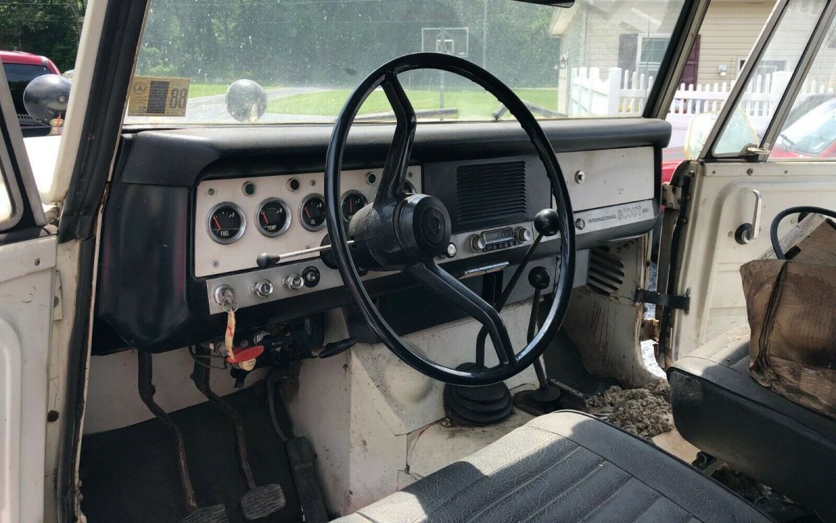 The interior of this Scout actually photographed pretty well once they got it out in the light. This is an 800A (built between 1968-1970) so it benefits from many improvements. There were “luxury” features added but the most notable changes include an uprated transfer case and beefier axles. These were needed because there was a more powerful V8 on the options list.