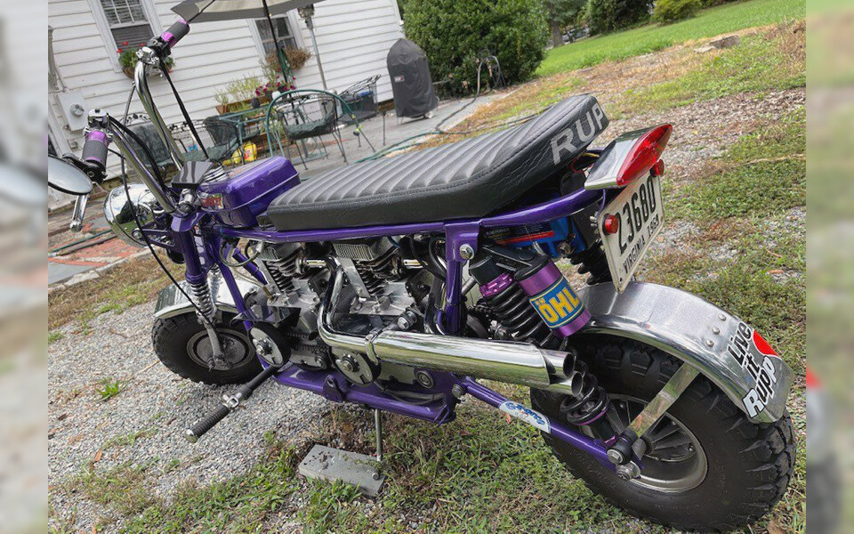 I built it in 2006. Stretched the frame 10″ and went from there. Designed a two speed automatic based on Rupps 1968 design, electric start, LED lighting, GPS speedometer. Its titled here in Va and street legal.