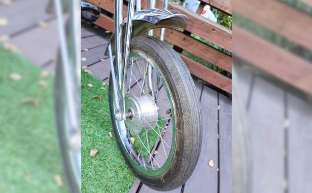 This is also not equipped with the rare disk brake option – yes they had them – so not sure the price is right. Should also be running a reproduction slick at least.
