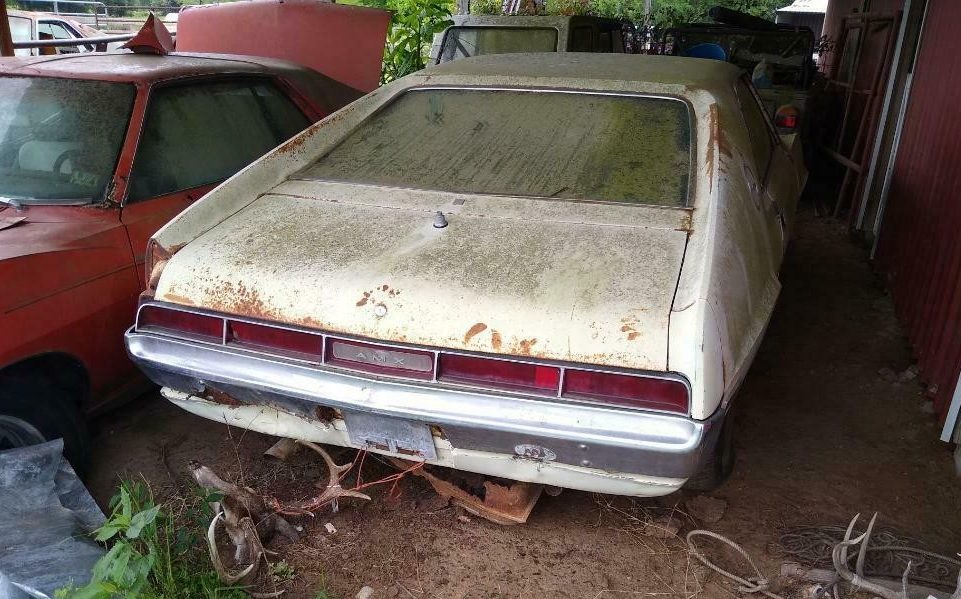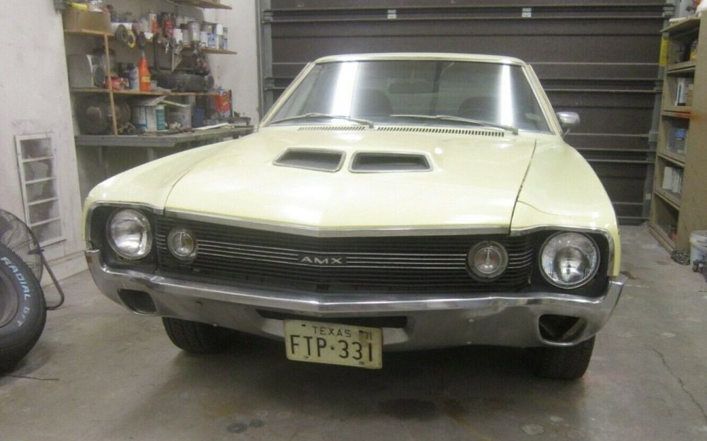 For those looking for a real barn – or in this case, lean-to – find, Barn Finds reader, Patrick S., may have found one for you. This 1970 AMC AMX 390 X-Code w/ Go-Pack can be found here on eBay in Magnolia, Texas. After 32 bids the current high bid is $12,400, but the reserve has not been met.