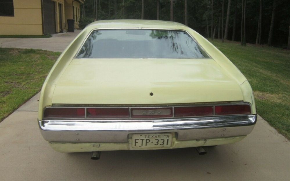 This looks identical to the AMX I almost bought in 1975. I wonder if it is the same car? 390, Go Pack, Yellow and black. But an unnerving engine knock made me walk away. Back then it was just an old car, a money pit.