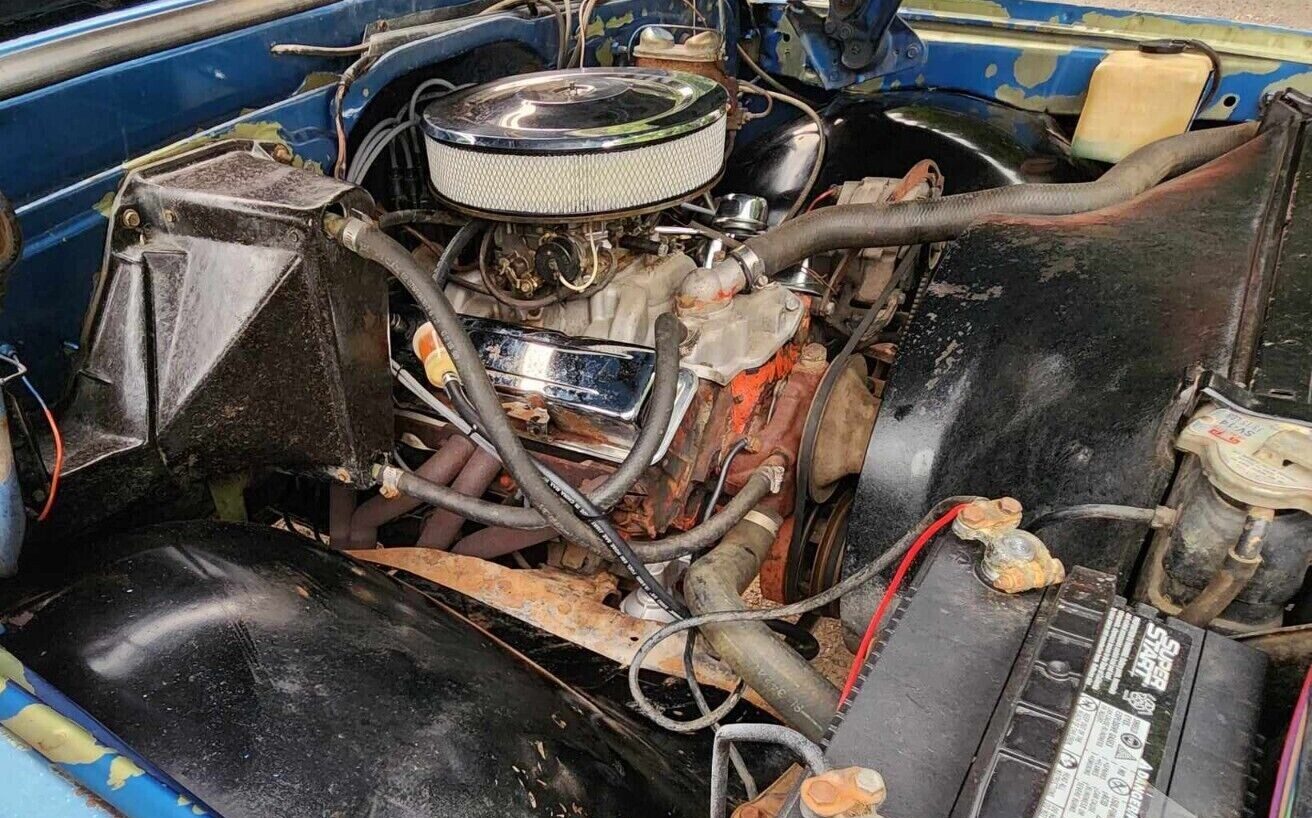 The ubiquitous 350 cid (5.7L) V8 and TH350 three-speed automatic transmission make one of the cheapest powertrains to keep running forever. Aftermarket headers and intake manifold may add a few ponies, and most engines saw their peak power numbers in in 1970, a welcome contrast to the smogged-up middle ’70s V8s. The new owner should consider changing out those undersized DIY battery cables for something beefier during week one, but there’s no need to go crazy changing parts that work without looking sketchy or dangerous. That might be some original Olive paint under chips on the top of the right fender. What would you change on this running first-gen Blazer?