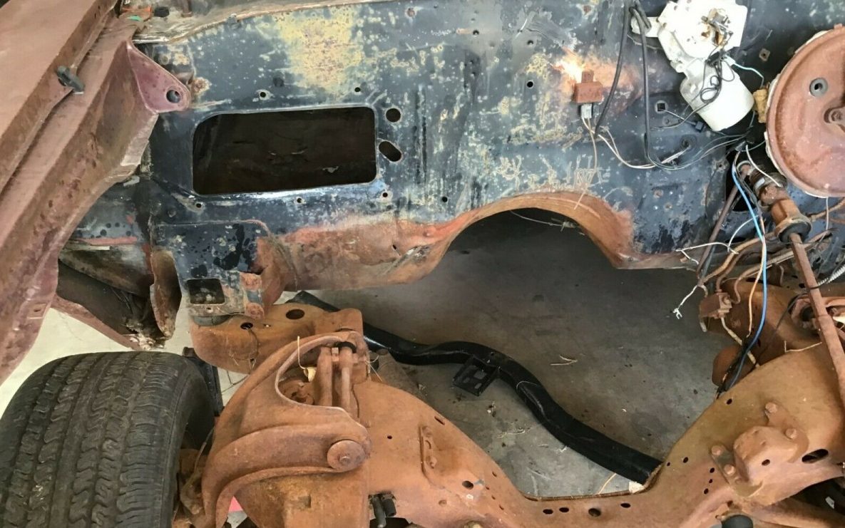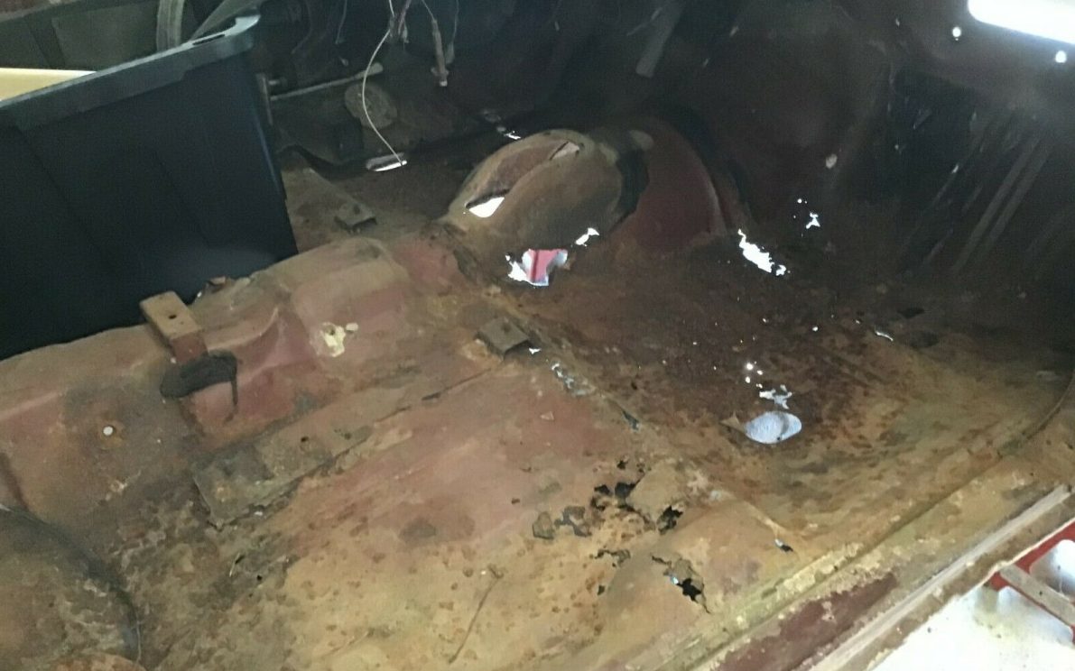 While there is an inside, there is no interior, it has been gutted. All that remains are swiss-cheesed floors. The dash and instrument panel appear to still be in place but there is no direct or identifying image. It doesn’t look like its bucket seats and center console are available.