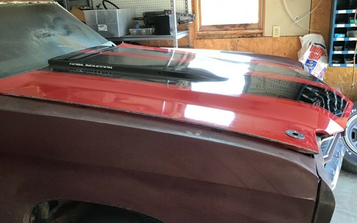 The exterior of this “Black Cherry True SS 396” is, well, finished in Black Cherry, a popular ’70 shade. It also was wearing a white (trim tag code “A”) vinyl top covering at one time too and it’s probably best that it has been removed considering their knack for trapping moisture. Other than the non-original hood, the body is not too hot as it shows lots of rust and some dents.