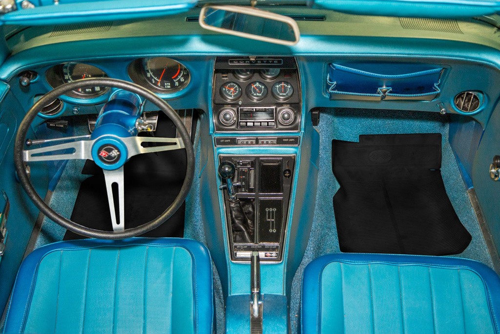 The Blue vinyl interior packs a real punch, and once again, its condition is impressive for its age. There is some edge wear on the driver’s seat, along with a seam separation. However, I believe that both issues could be addressed without having to resort to a new cover. There is also some minor wear on the wheel rim, but that’s all there is to be critical of. The remaining upholstery is spotless, the dash and all of the plastic present beautifully, and there is no apparent wear or staining on the carpet. There are also no aftermarket additions. The Corvette was ordered with an AM/FM radio, and that’s what is still there. The only other box ticked was for the factory alarm system.