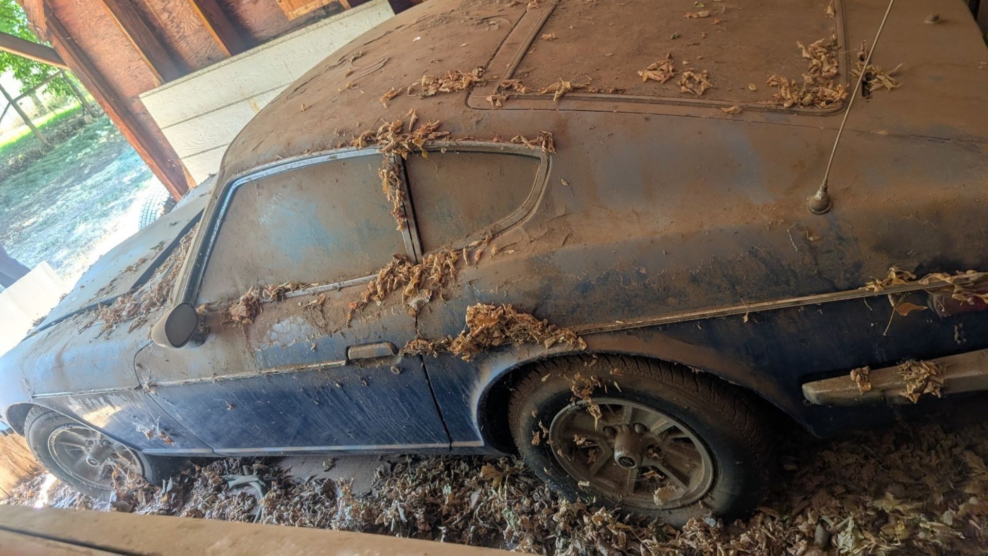 The photos show exactly what you’d expect from a decades-long hibernation: a thick coat of dust, leaves piled on the body, and the unmistakable look of a long-forgotten car. Despite its barn-fresh appearance, the blue paint is believed to be factory original, complete with the kind of patina many collectors prefer over fresh paint. The Series 1 details are all here too, including the vented rear hatch, vertical defroster lines, and pillar badges unique to these early Z-cars.