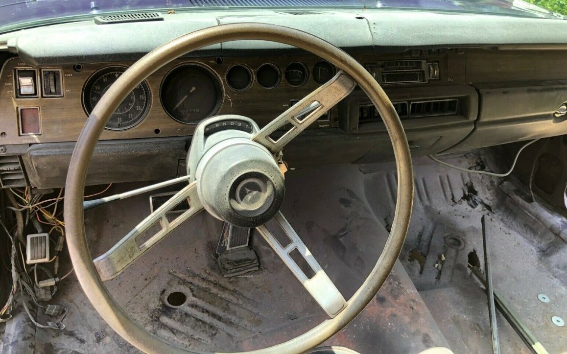 The dash and instrument panel could be a trouble spot. The dash pad is cracked, no big deal, but there is some dislodged wiring in place and the resolution of electrical issues on a half-century-old car can be like the Hunt for Red October. Hopefully, that’s not the case. The instruments/gauges would seem to be in place, no word if they all work. The visible floors should help to allay any concern regarding underside, structural integrity. Of note, the original radio/8 track player is still in place!
