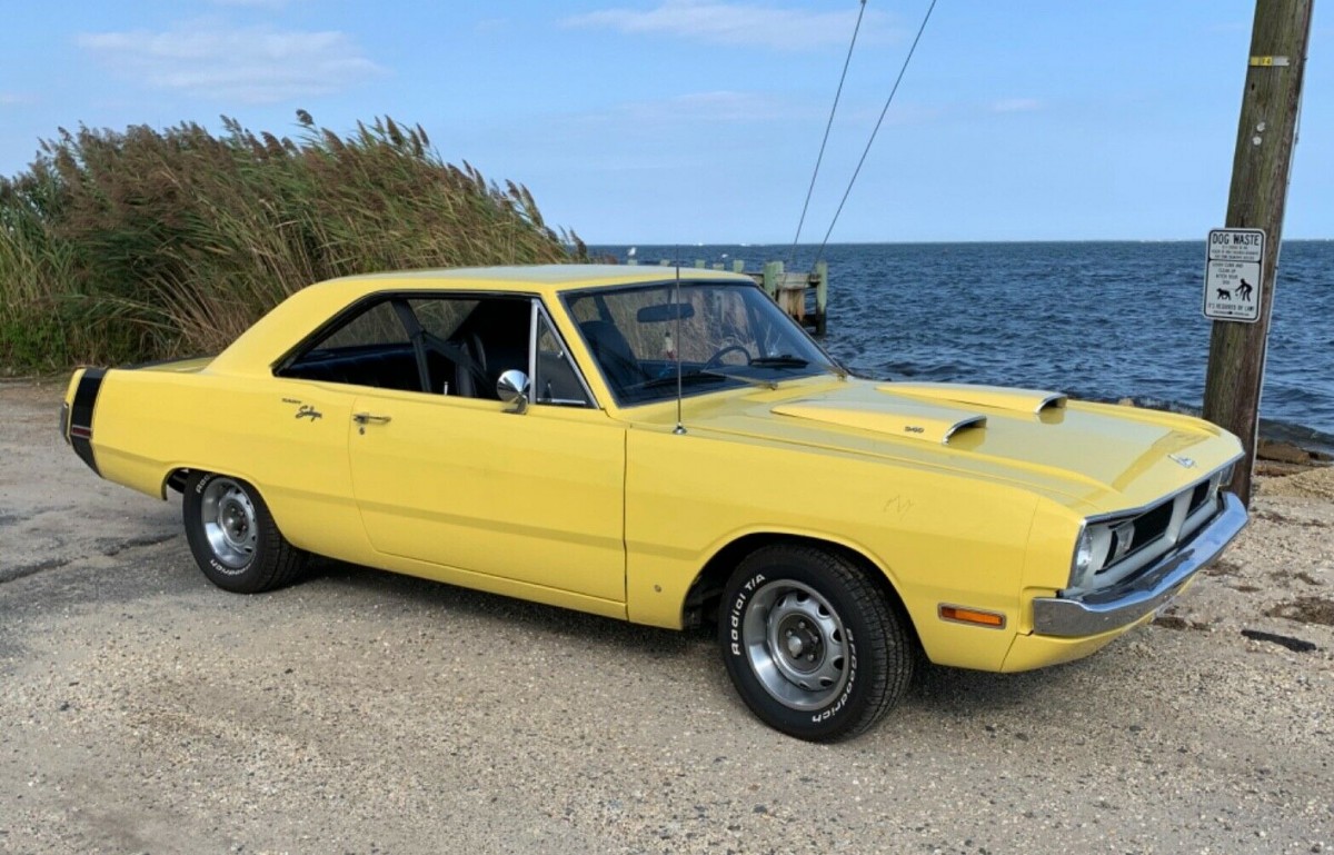 As a compact, the Dart appeared in Dodge sales literature from 1963-76. It hit its stride in its fourth generation, 1967-76. In 1970, the car’s styling was refreshed so it would look more like Dodge’s full-size vehicles. Production of the near 200,000 total Darts for 1970 was consolidated in either Los Angeles, California or Windsor, Ontario. The Swinger name applied to all Dart two-door hardtops except the high-line custom series. To avoid internal competition with the Challenger, the Dart convertible was gone with the 275 hp, 340 cubic inch four-barrel V-8 as the biggest engine you could get in a Dart. The 1970 Swinger 340 came with functional hood scoops and 340 emblems, plus front disc brakes, heavy-duty suspension and a 3.23:1 rear axle ratio. The seller’s Swinger came with optional all-vinyl bucket seats, a center console and Rallye wheels. Dodge built just under 14,000 Swinger 340s that year.