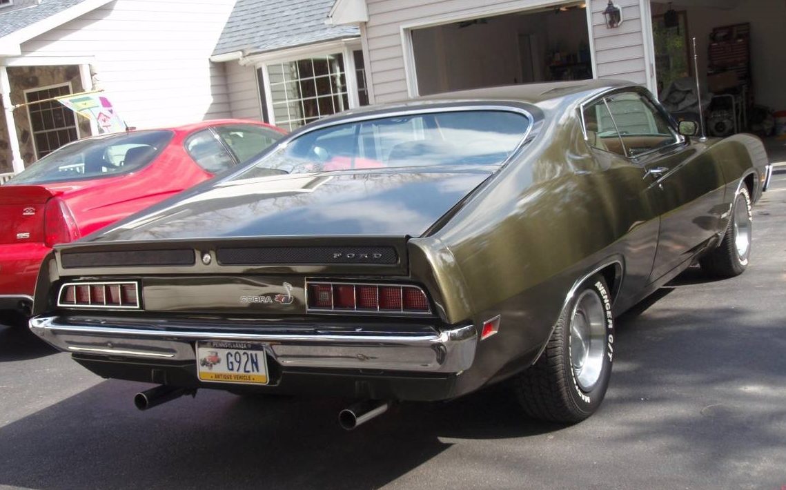 i ordered a ’71 torino specked out just like a cobra, but w/o all the markings of a cobra. it was a blue-grey, with black interior and full front seat, no buckets. everything else was the 429 cobra with the hurst pistol grip shifter(it was great on dates). i raced it one time against a 427 chevy II. its still at the gate, beat it by 6-8 car lengths. i got it on the interstate one time and put it to the floor. speedometer only register 120, but i was way past that. my buddy and i figured we were about 130-135 when the front end started lifting off the ground. that was it for me. oh, the gas mileage was not that bad. when highway driving i got between 21-23 mpg. loved that car. got married and had to sell. i have looked for it everywhere. but have been told with the setup i had being so unique, it would probably go for over $100,000. i now drive a 2016 grey convertible mustang gt. 425 hp. and it scares me sometimes and im 74