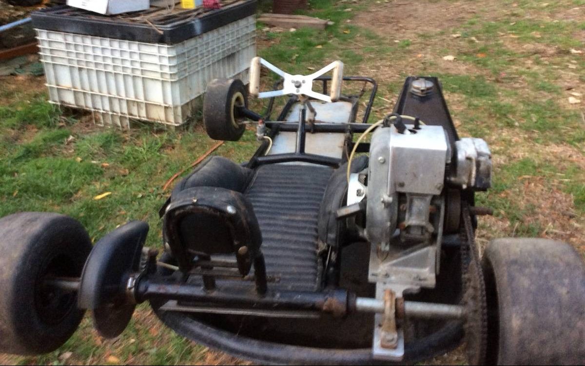 Kart chassis appears to be offset for mostly left-hand turns. Pavement circle-track racing in an old open-front lay-down would be more than I’d want to have a go at!